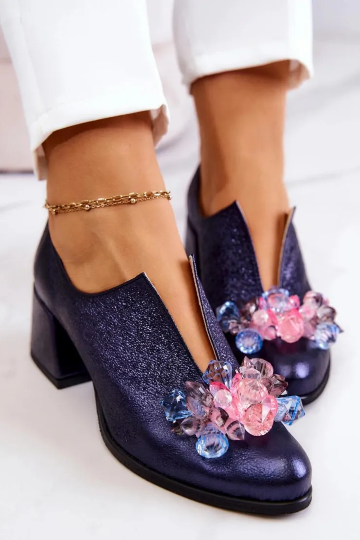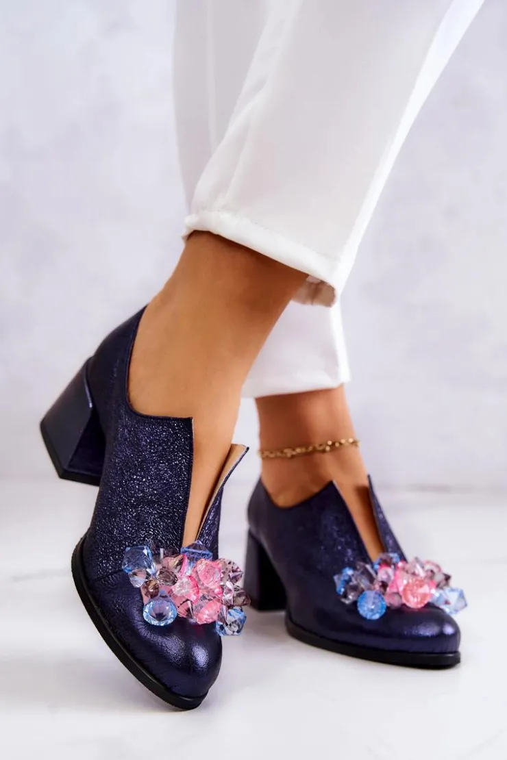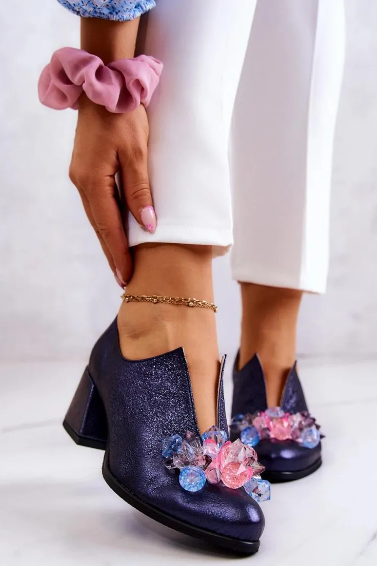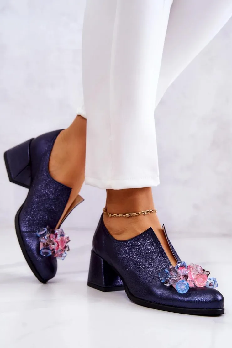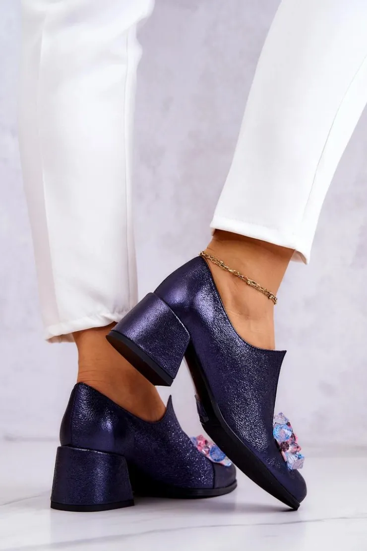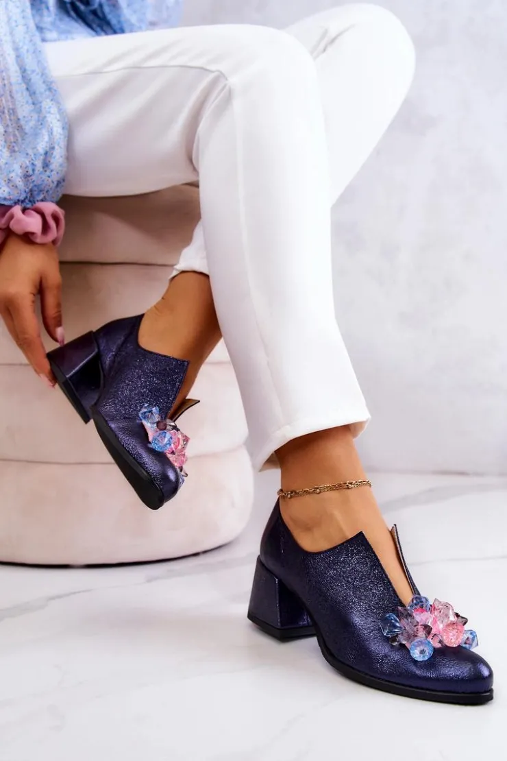 Eleganckie półbuty na niskim obcasie w postaci szerokiego słupka. Zostały wykonane z naturalnej skóry. Posiadają miękką wkładkę. Ozdoba przyszyta na przodzie oraz rozcięcie sprawia, że są naprawdę wyjątkowe. Buty posiadają nosek w kształcie migdała. Koniecznie sprawdź także pozostałe modele półbutów dostępnych w naszej ofercie! Przy wyborze rozmiaru prosimy sugerować się tabelą rozmiarów.