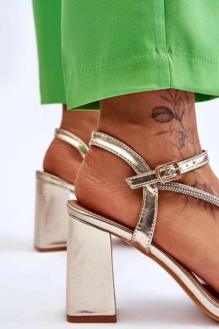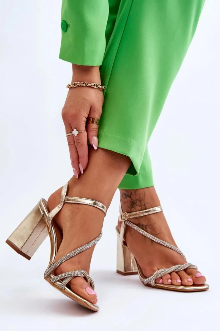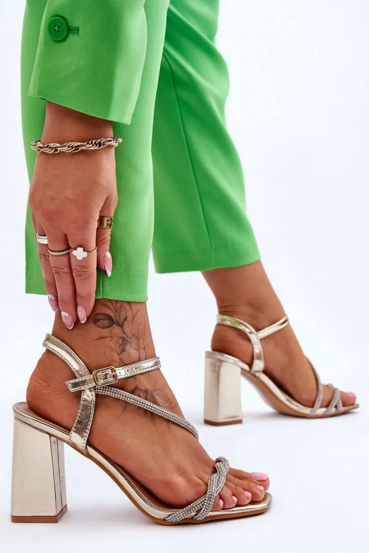 Damskie sandały zostały wykonane z eko skóry. Posiadają z przodu przeplatające się paski z dżetami imitującymi cyrkonie oraz paseczek znajdujący się na środku sandałek. Wygodna wkładka z eko skóry pozwoli na komfortowe użytkowanie obuwia. Buty posiadają regulowany pasek zapinany na sprzączkę wokół kostki. Ten model powinien być Twój! Przy wyborze rozmiaru prosimy sugerować się tabelą rozmiarów.