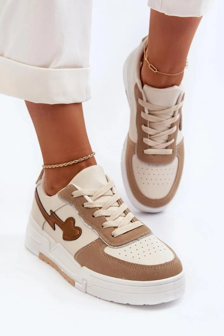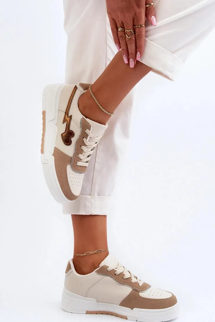 Modne sneakersy damskie wykonane z eko skóry. Osadzone na platformie, dodają nieco wzrostu, jednocześnie zapewniając stabilność i komfort. Piankowa wkładka zapewnia doskonałą amortyzację, ale również jest wyjmowana, umożliwiając łatwe czyszczenie. Klasyczne sznurowanie oraz zaokrąglone noski nadają im uniwersalny wygląd, który pasuje do wielu różnych stylizacji. Przy wyborze rozmiaru prosimy kierować się tabelą rozmiarów.