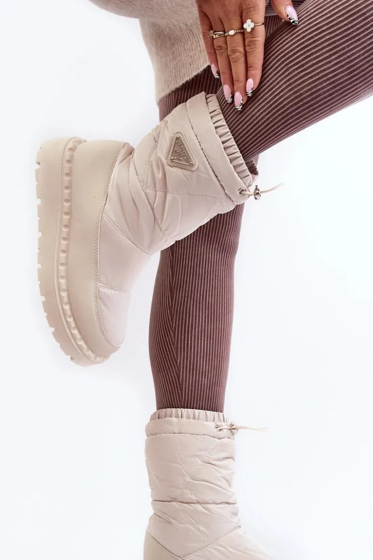 Outlet Boto Śniegowce Damskie Na Grubej Podeszwie Jasnobeżowe Lureta