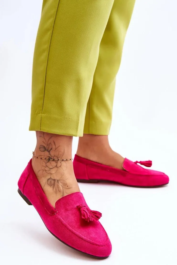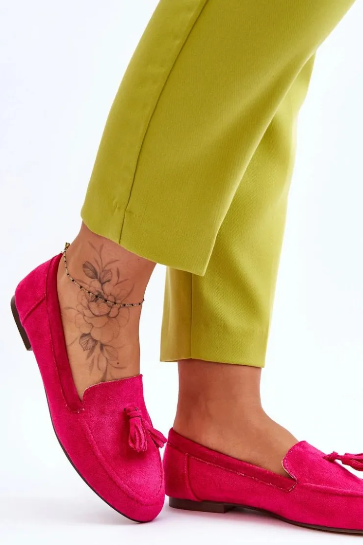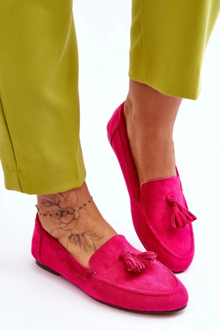 Outlet Boto Zamszowe Klasyczne Mokasyny Z Frędzlami Fuksja Averil