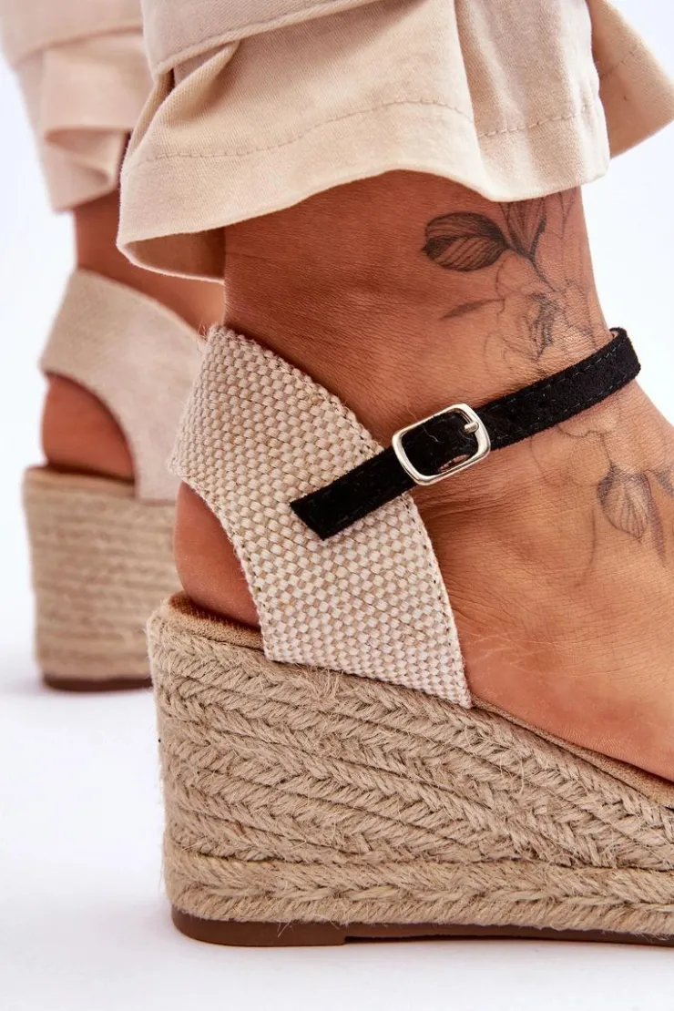 Outlet Boto Zamszowe Sandałki Espadryle Na Koturnie Czarne Cammer