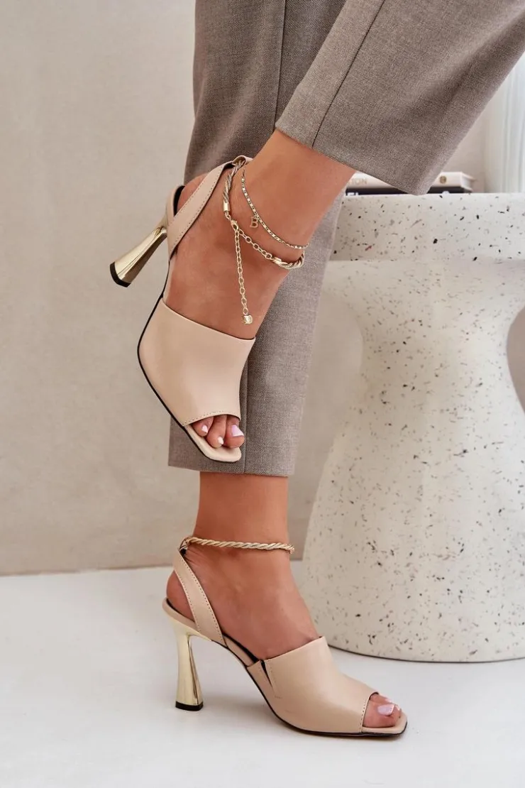 Sandały damskie od marki CheBello wykonane z wysokiej jakości naturalnej skóry. Osadzone na smukłej szpilce, z subtelną bransoletą wokół kostki, dodającą elegancji i szyku. Idealne na wyjątkowe okazje oraz wieczorne wyjścia, łączą w sobie styl, klasę i komfort noszenia. Przy wyborze rozmiaru prosimy sugerować się tabelą rozmiarów.