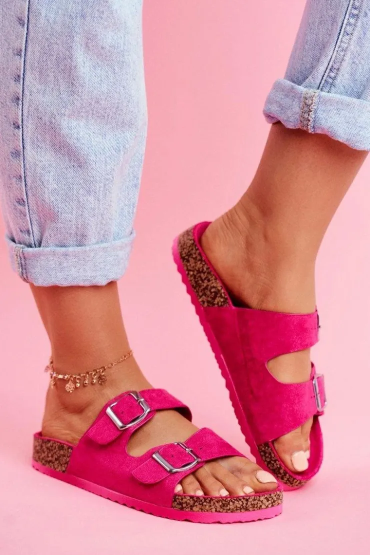 Outlet Evento Damskie Klapki Na Korku Z Klamrami Fuksja Si Senor Różowy