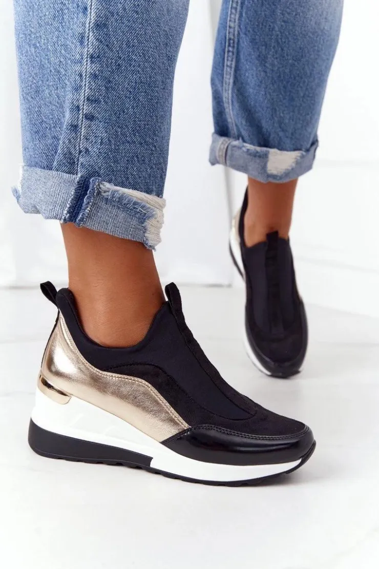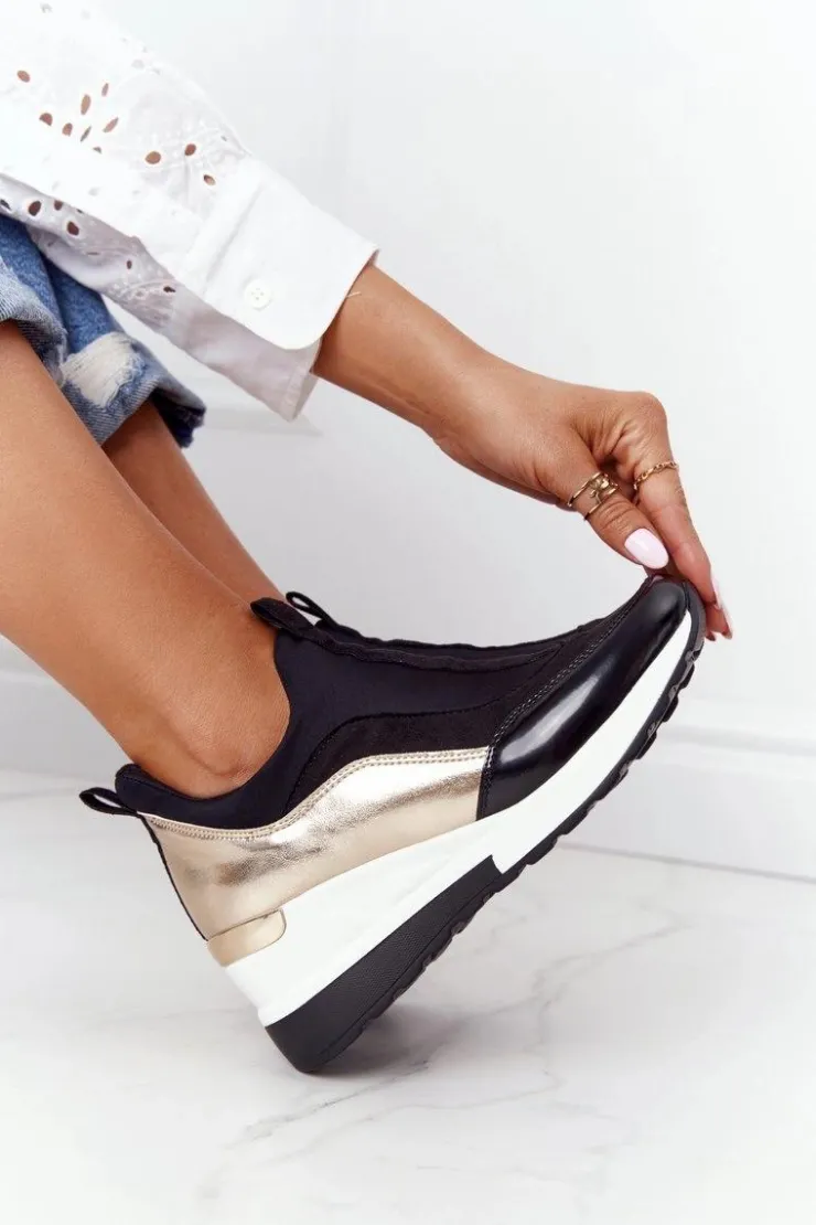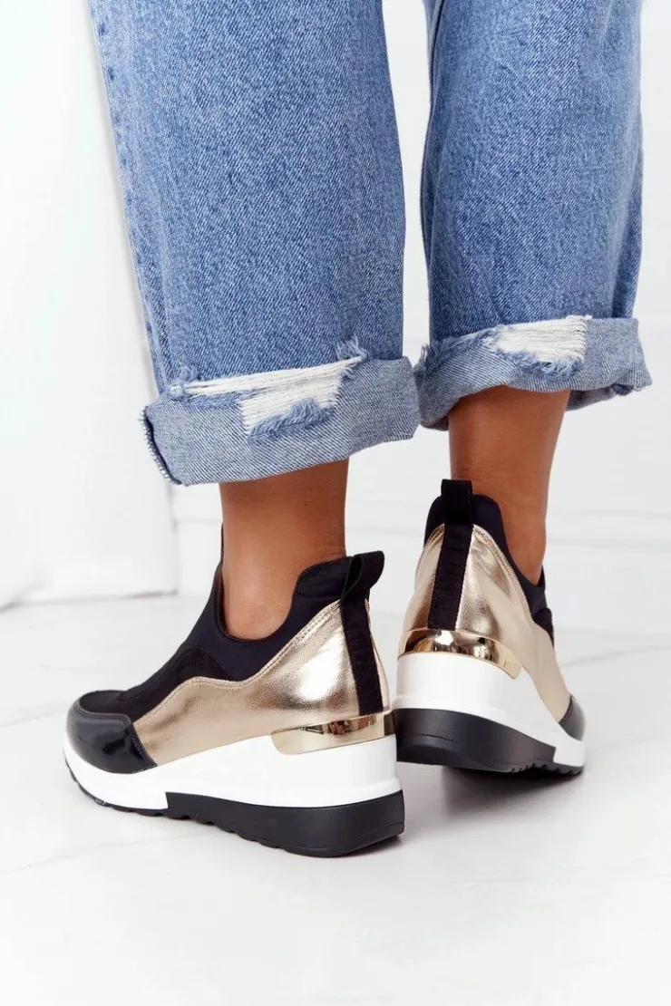 Eleganckie sneakersy na koturnie. Buty wykonane są z połączenia eko skóry oraz elastycznej tkaniny. Kilkucentymetrowy koturn uniesie Twoją sylwetkę, a miękka wkładka z eko skóry zadba o Twój komfort! Koniecznie sprawdź całą naszą kolekcję damskich sneakersów! Przy wyborze rozmiaru prosimy kierować się tabelą rozmiarów.