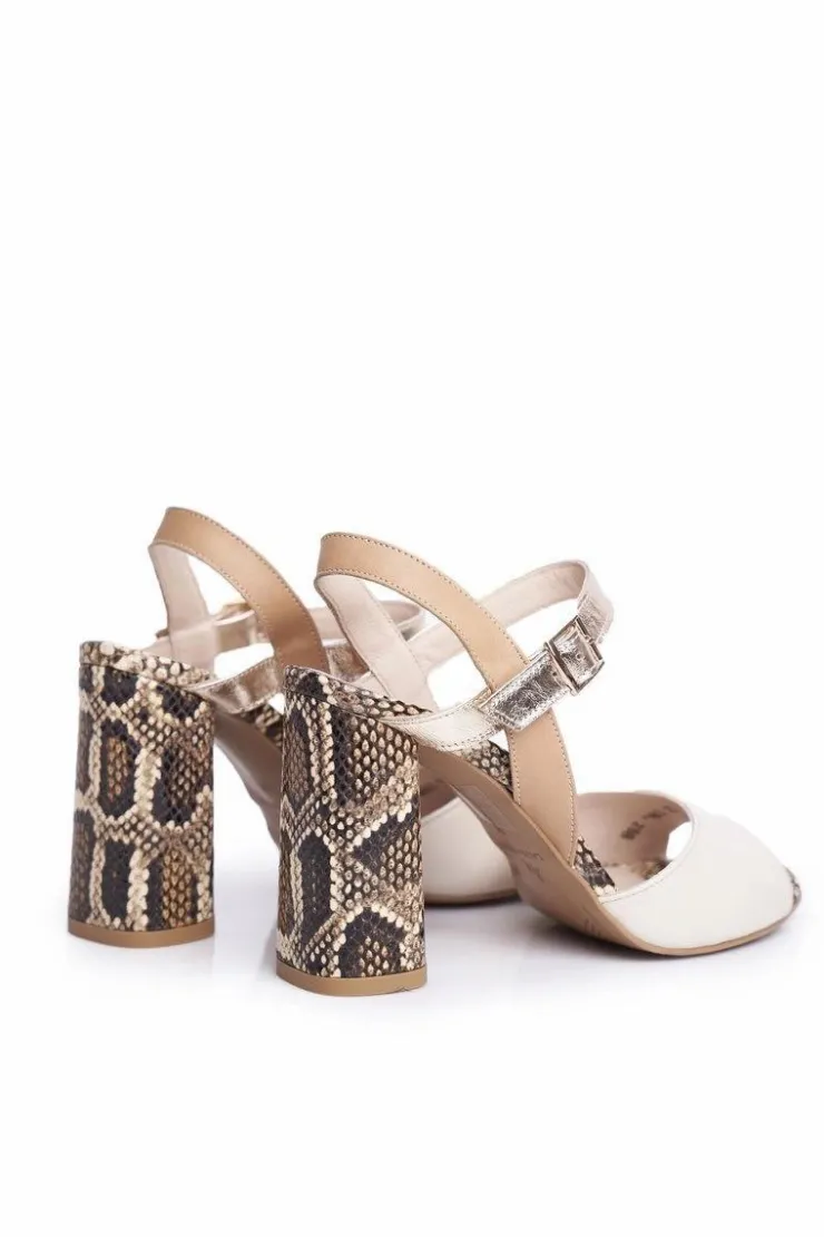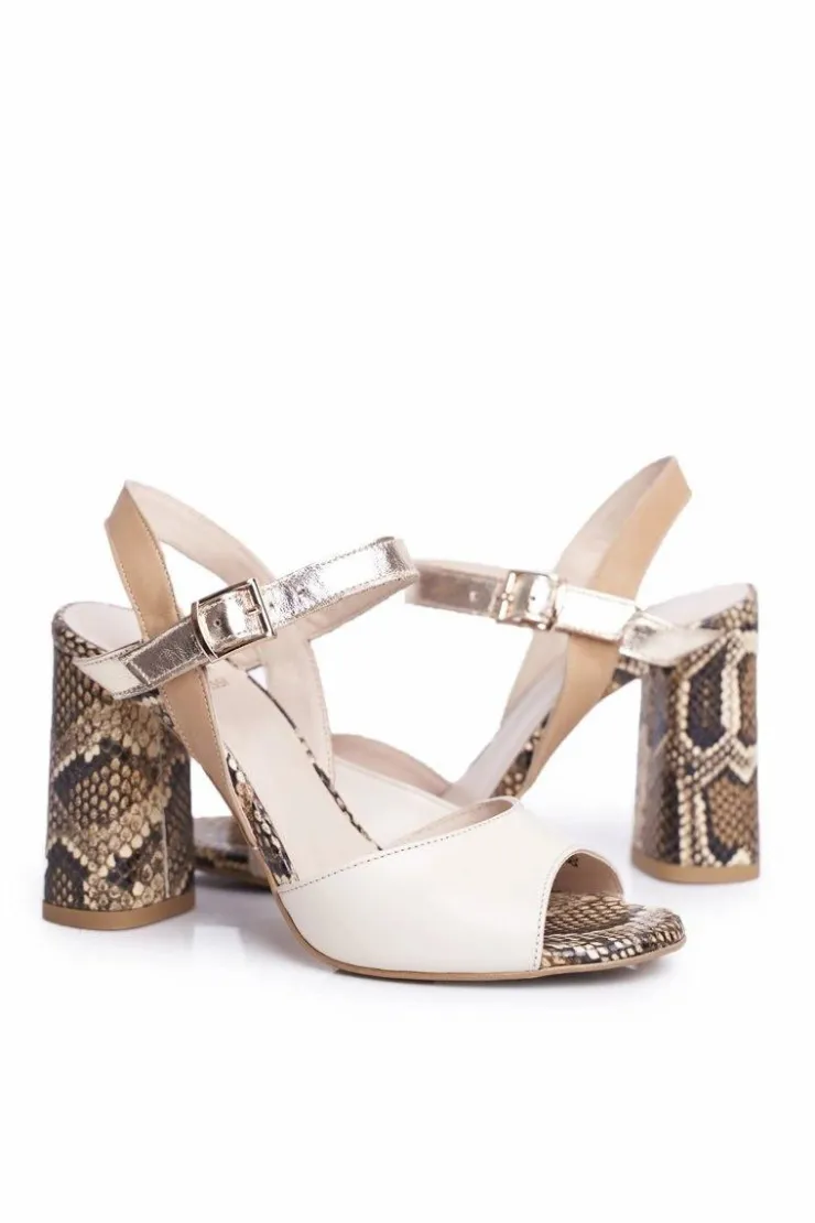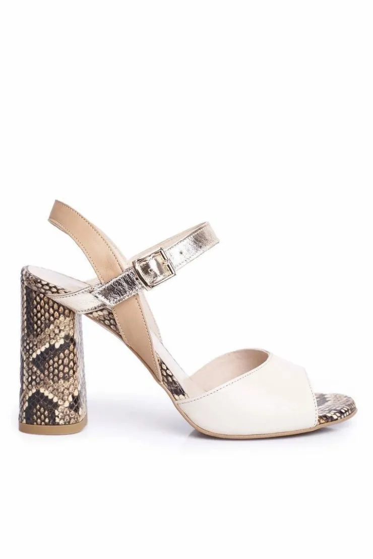 Outlet Laura Messi Skórzane Sandały Na Słupku 2136 Złoto Beżowe