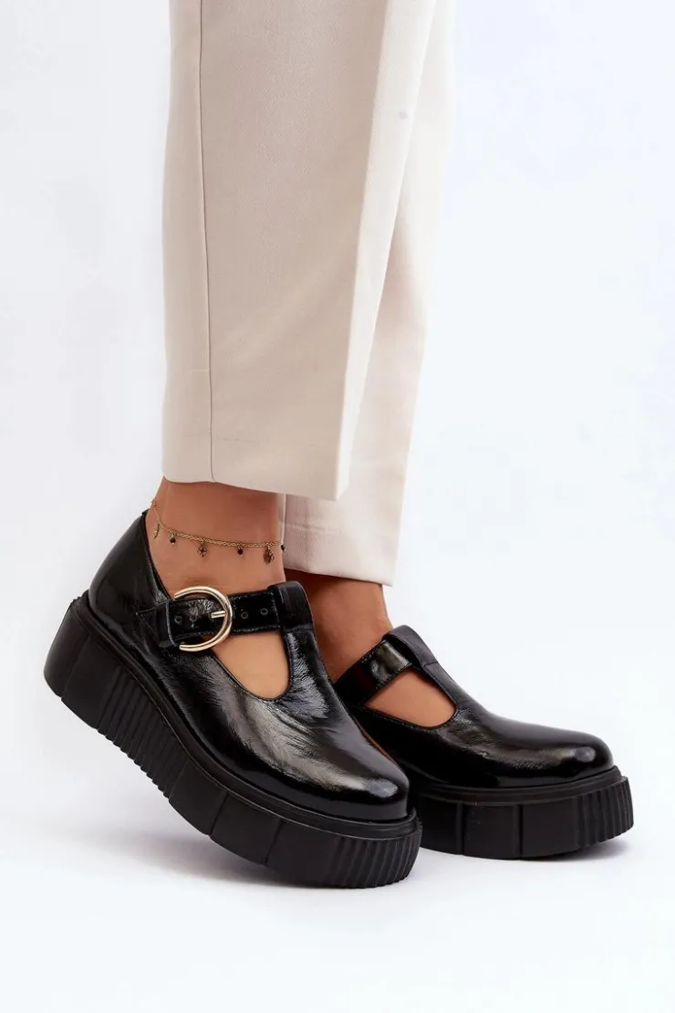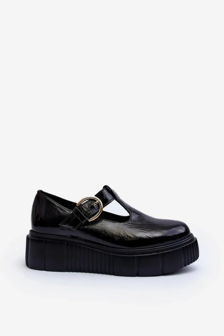 Modne półbuty damskie posiadają masywną platformę ze żłobieniami po bokach. Cholewka przed kostkę została wykonana z naturalnej skóry. Półbuty te posiadają usztywniany zapiętek. Zapinane z boku cholewki na klamrę z regulowanym paskiem. Ten model świetnie podkreśli Twoje stylizacje! Musisz go mieć! Przy wyborze rozmiaru prosimy sugerować się tabelą rozmiarów.