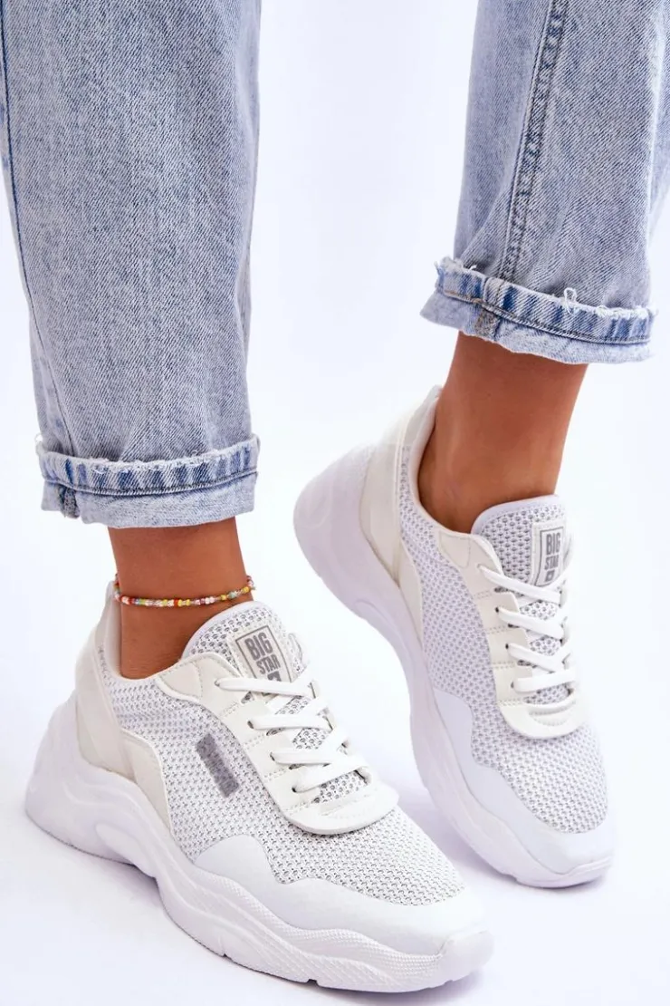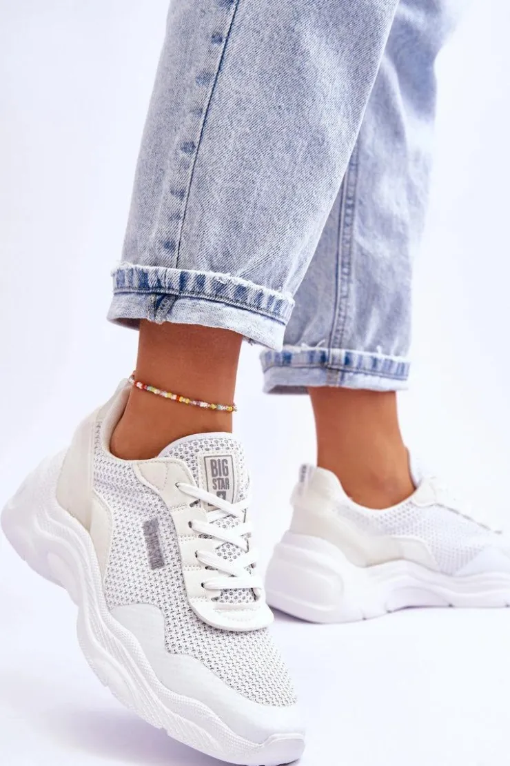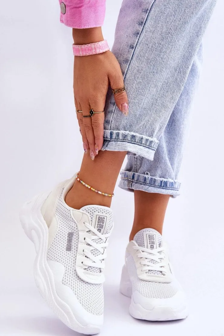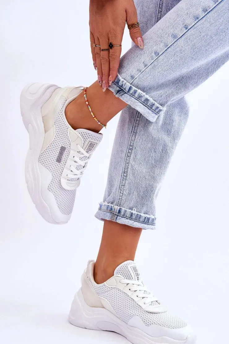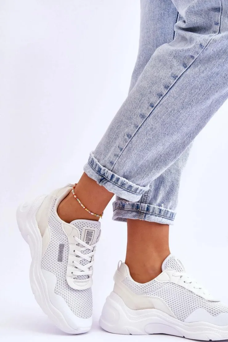 Damskie sneakersy marki Big Star zostały wykonane z połączenia tkaniny oraz eko skóry. Buty posiadają także wzmocniony zapiętek. Sneakersy posiadają wkładkę Memory Foam System, która zapamiętuje kształt stopy, zapewnia doskonałe dopasowanie, absorbuje wstrząsy, jest odporna na odkształcenia oraz pozwala na odparowanie wilgoci i regulację temperatury. Buty zostały osadzone na platformie i płaskim obcasie. Przy wyborze rozmiaru prosimy sugerować się tabelą rozmiarów.