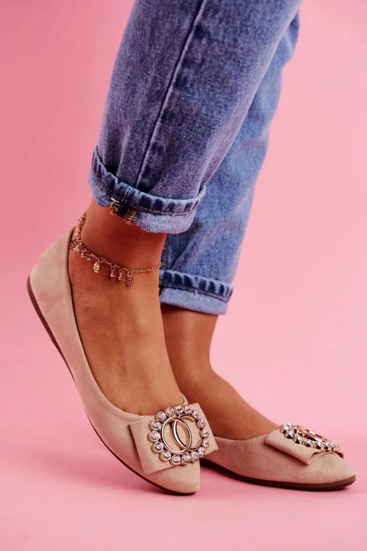 Sale Boto Baleriny Damskie Eko-Zamsz Beżowe Montreal
