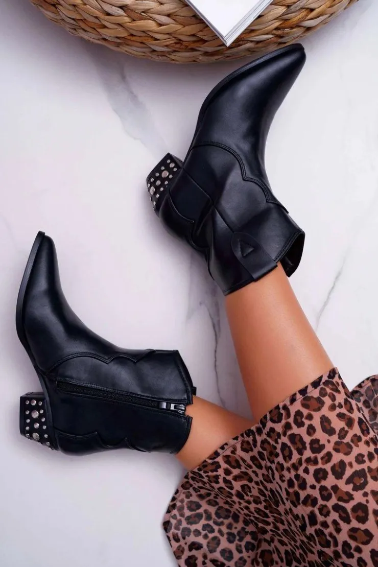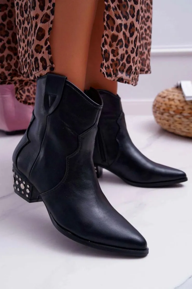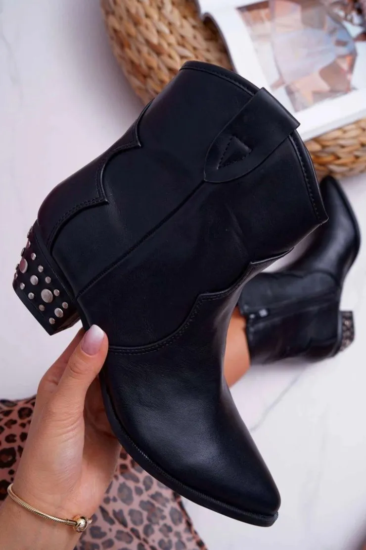 Sale Boto Botki Damskie Kowbojki Czarne Cliff