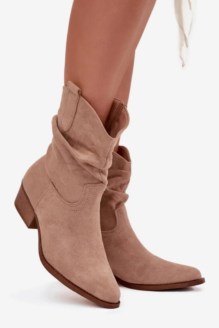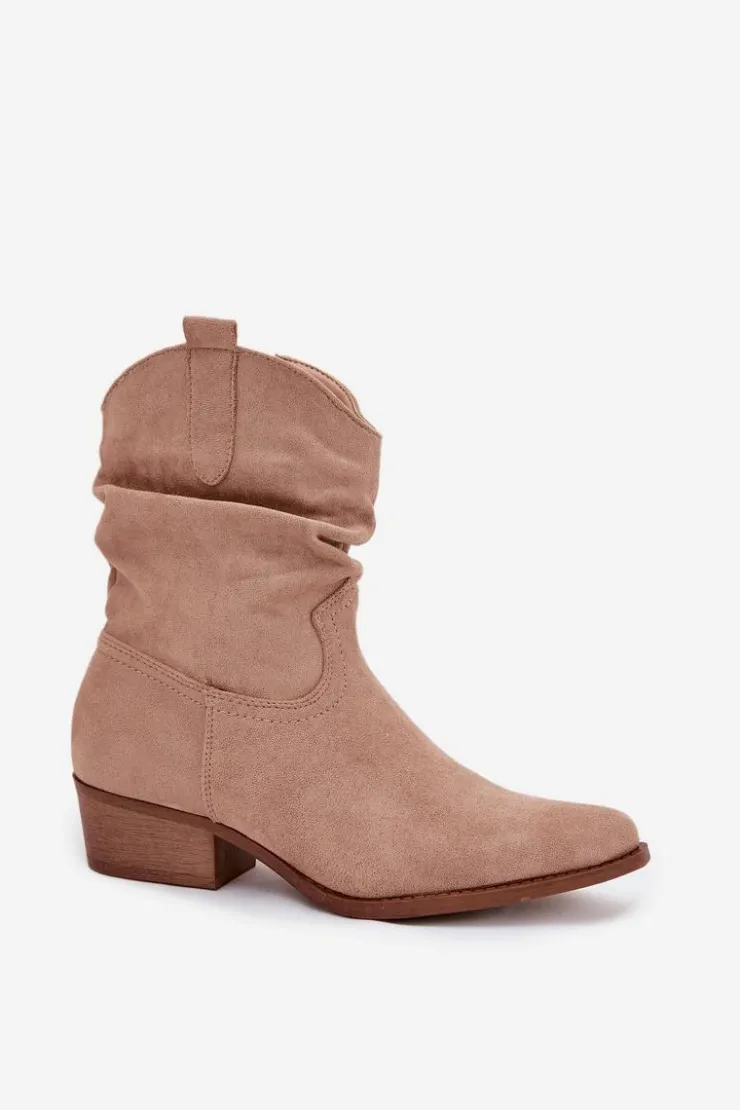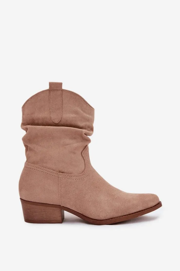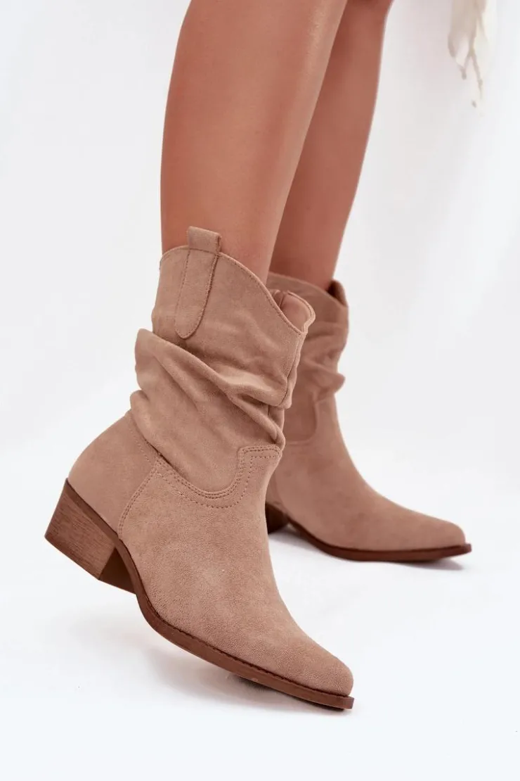 Sale Boto Botki Damskie Na Niskim Obcasie Z Marszczeniem Beżowe Adena