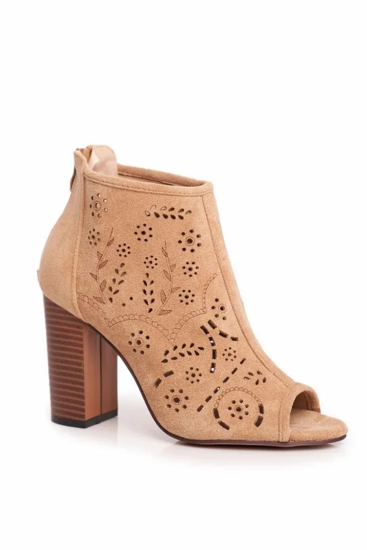 Sale Boto Botki Damskie Na Słupku Zamszowe Ażurowe Beżowe Papillon