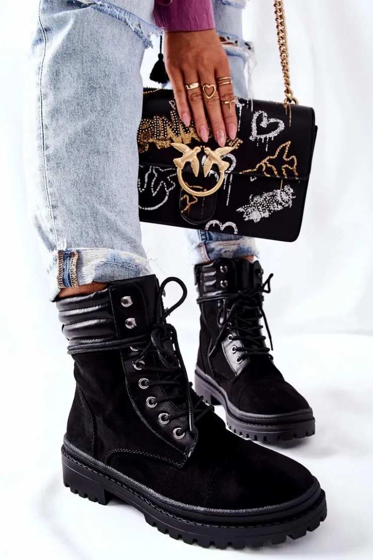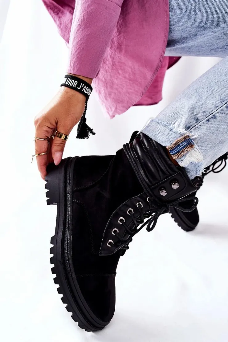 Klasyczny fason ze sznurowaniem oraz zapinaniem z boku cholewki. Wykonane z lakierowanej skóry ekologicznej. Przy wyborze rozmiaru prosimy sugerować się tabelą rozmiarów.