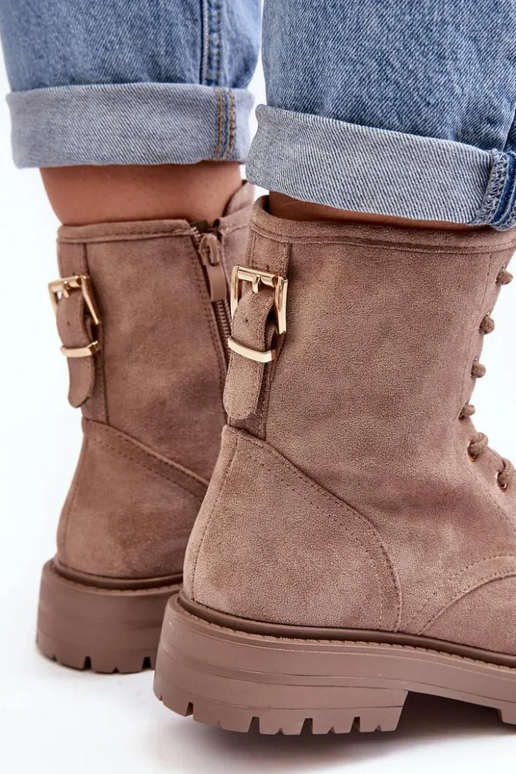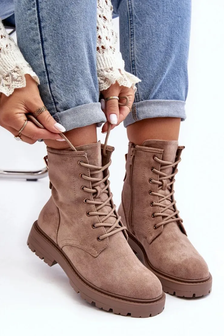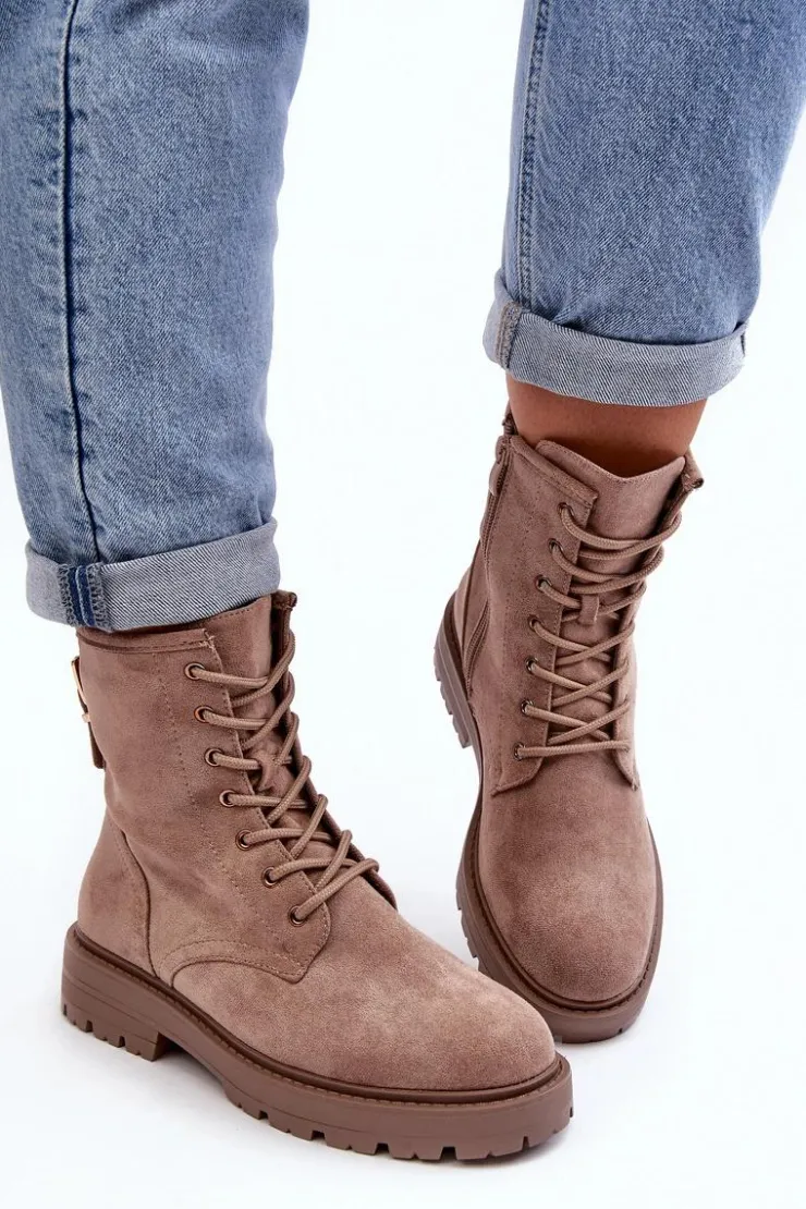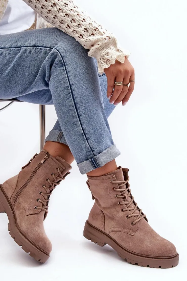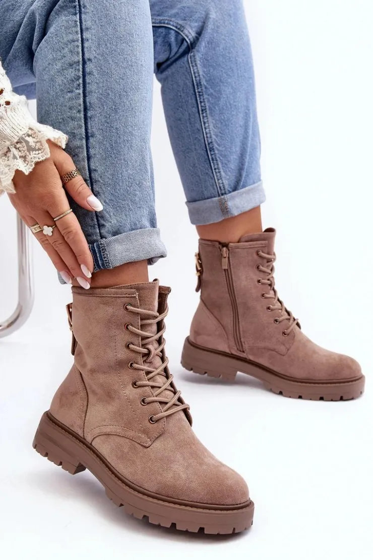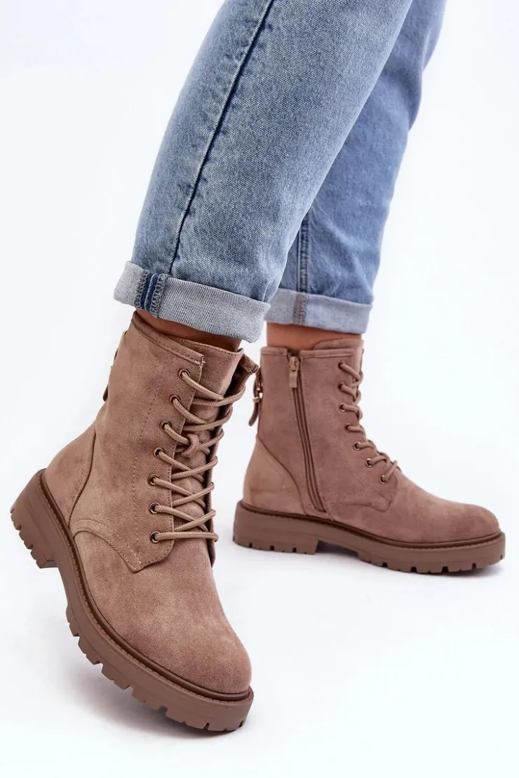 Sale Boto Damskie Botki Workery Na Suwak Ciemnobeżowe Ninsuni