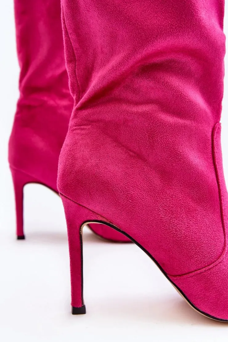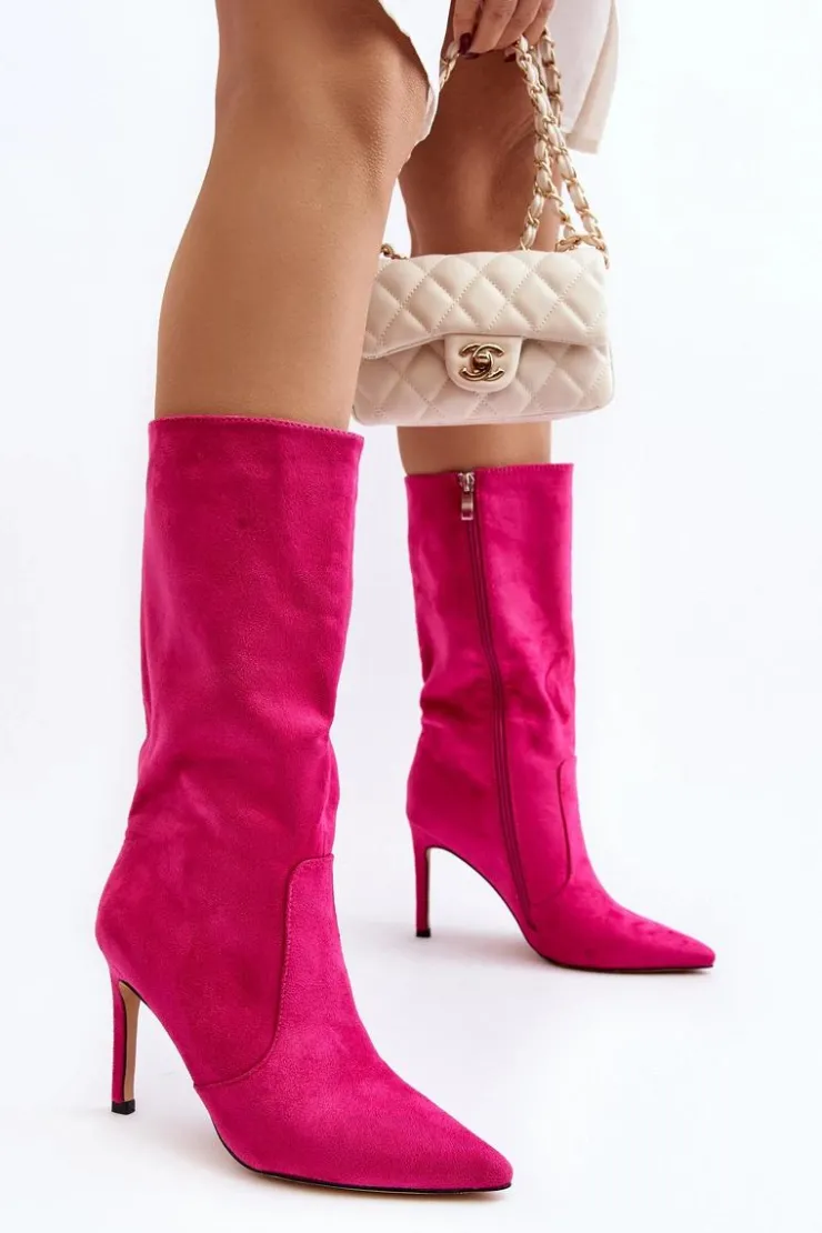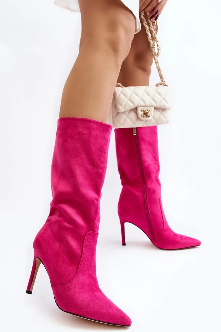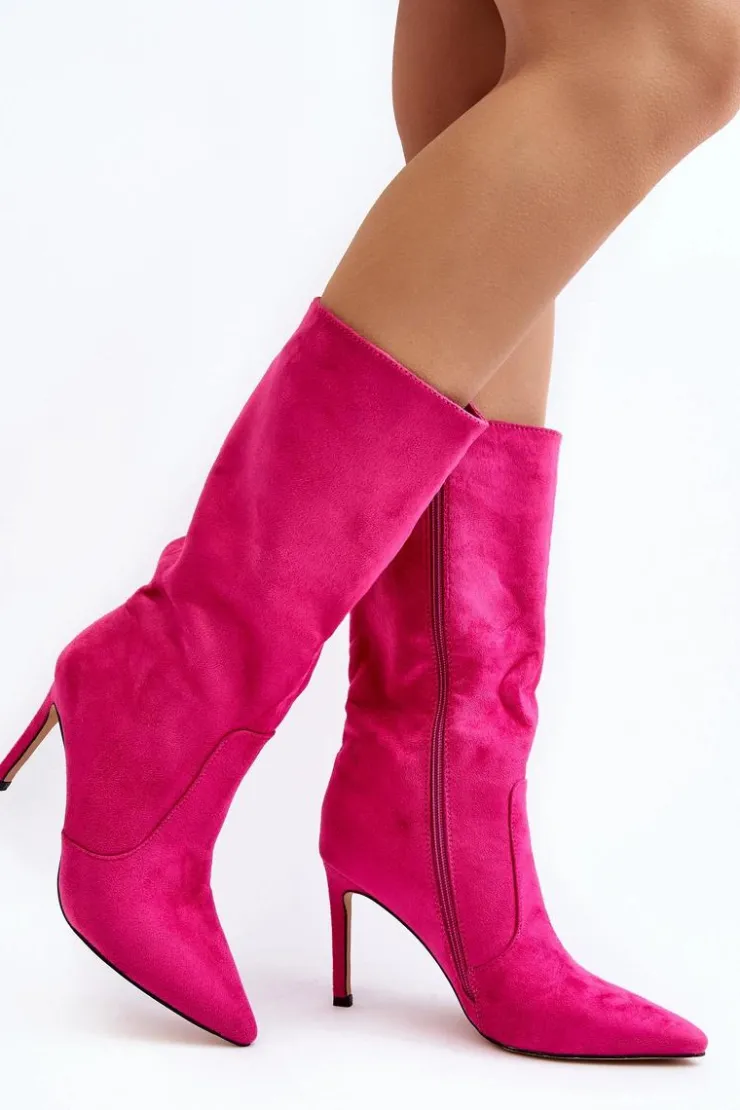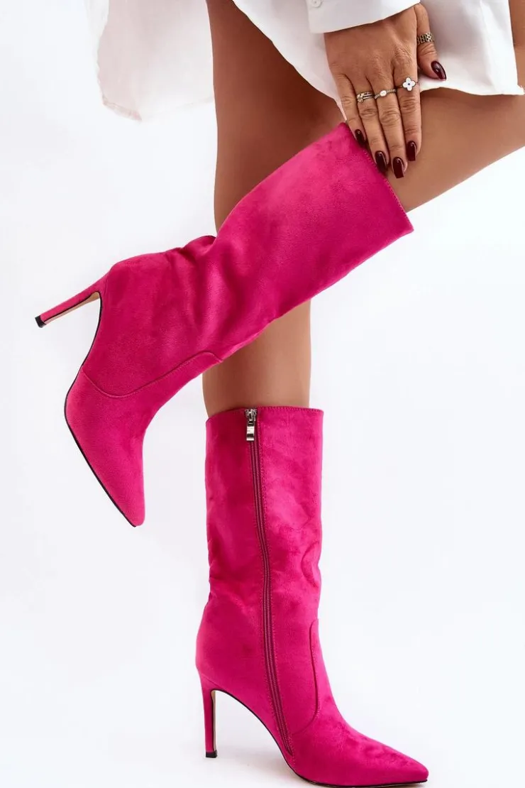 Kozaki damskie wykonane z eko zamszu. Osadzone na zgrabnej szpilce, co dodaje im kobiecego uroku, a jednocześnie gwarantuje elegancję. Ocieplenie w postaci koca obuwniczego zapewnia ciepło i komfort w chłodniejsze dni. Delikatnie szpiczaste noski optycznie wysmuklają nogi, dodając subtelnego wdzięku. Suwak na całej długości cholewki ułatwia zarówno zakładanie, jak i zdejmowanie butów. Ten wyjątkowy model zasługuje na swoje miejsce w Twojej garderobie! Przy wyborze rozmiaru prosimy sugerować się tabelą rozmiarów.