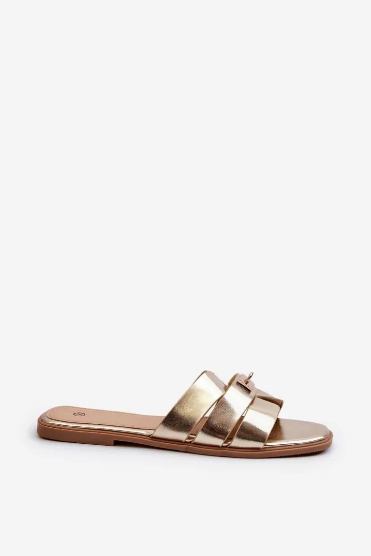 Stylowe i płaskie klapki damskie są idealnym wyborem na upalne dni. Wykonane z eko skóry. Z przodu delikatna złota ozdoba, która dodaje im elegancji i wyjątkowego charakteru. Te klasyczne klapki nie tylko świetnie prezentują się, ale także są komfortowe i praktyczne na co dzień, doskonale uzupełniając letnią garderobę. Przy wyborze rozmiaru prosimy sugerować się tabelą rozmiarów.