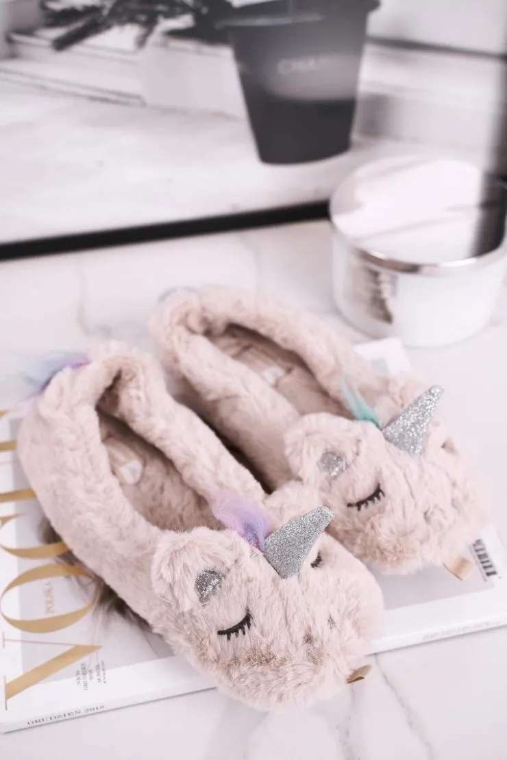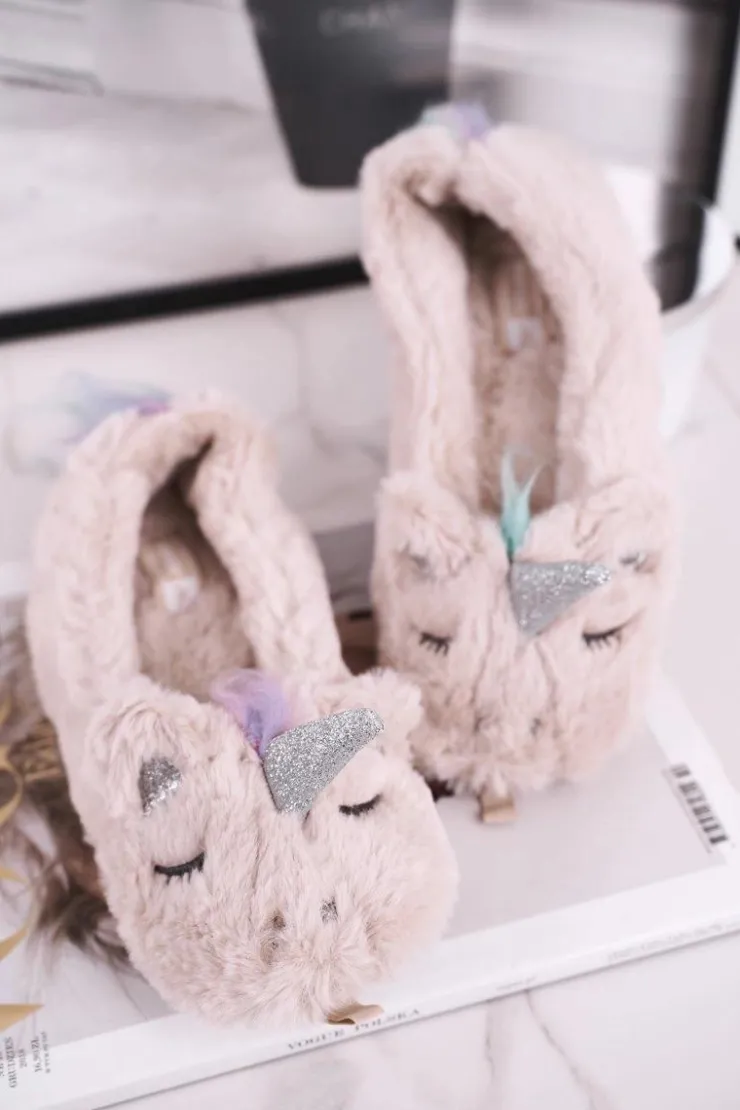 Sale Boto Papcie Damskie Futrzane Jednorożce Beżowe Rainbow