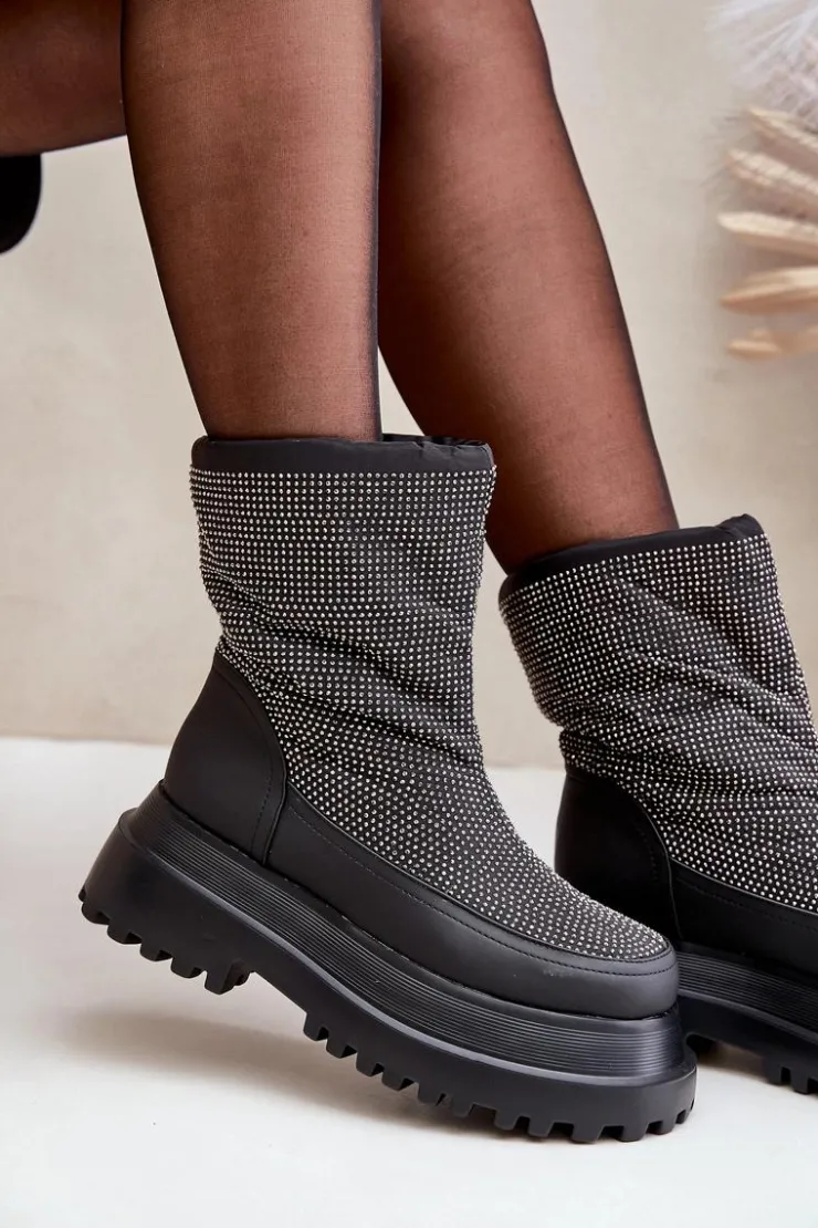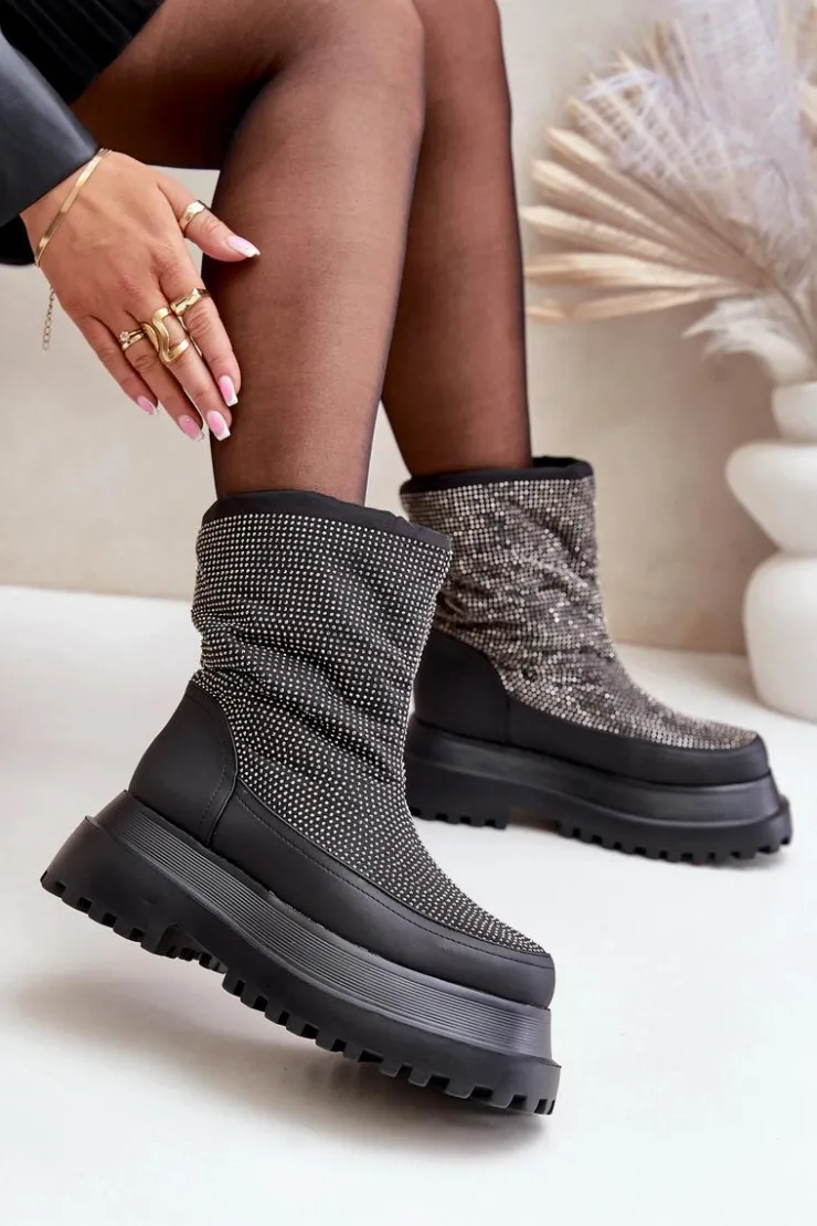 Śniegowce wykonane z materiałów odpornych na mróz i wiatr to doskonały wybór na najbardziej wymagające, zimowe dni. Osadzone na platformie z płaskim obcasem, zapewniają stabilność i komfort podczas chodzenia po zaśnieżonych powierzchniach. Błyszcząca cholewka z dekoracyjnymi detalami dodaje im modnego, przyciągającego wzrok charakteru. Górna część cholewki wykończona została praktycznym ściągaczem, który skutecznie chroni przed wiatrem i śniegiem, zapewniając dodatkowe ciepło. Te stylowe śniegowce idealnie łączą funkcjonalność z modnym wyglądem, sprawdzając się zarówno w miejskich stylizacjach, jak i podczas zimowych spacerów. Przy wyborze rozmiaru prosimy sugerować się tabelą rozmiarów.