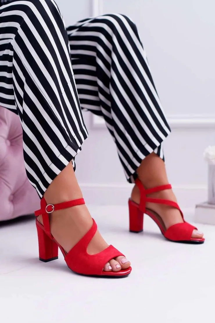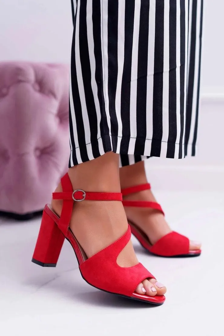 Sale Buty Sergio Leone Sandały Damskie Na Słupku Sergio Leone SK868 Zamszowe Czerwone Mersi