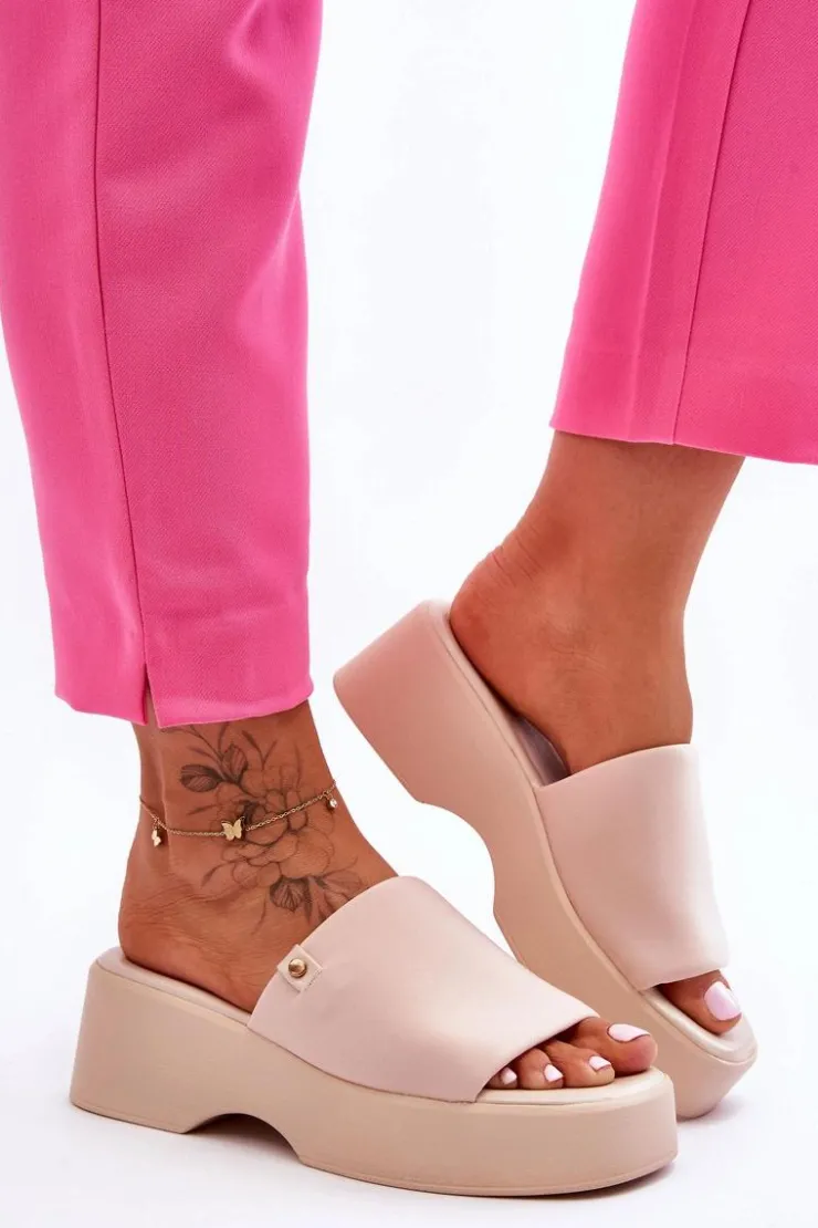 Klasyczne klapki osadzone na masywnej platformie i płaskim obcasie. Wykonane z wierzchu z materiału tekstylnego. Posiadają delikatne zdobienie. Miękka wkładka zapewni wygodne użytkowanie obuwia nawet przez cały dzień. Klasyczny fason z odkrytym, kwadratowym noskiem. Świetnie sprawdzą się do wielu stylizacji! Przy wyborze rozmiaru prosimy kierować się tabelą rozmiarów.