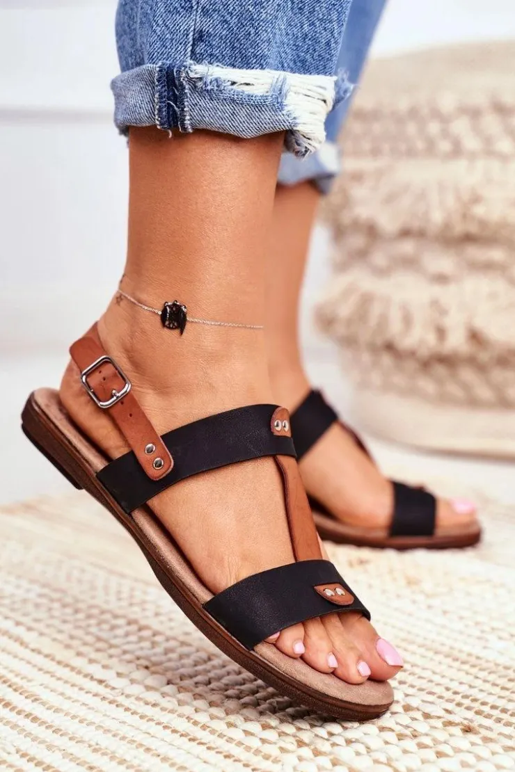 Klasyczne sandały damskie wykonane ze skóry ekologicznej sprawdzą się w każdej codziennej stylizacji. Miękka wkładka zadba o Twój komfort. Przy wyborze rozmiaru prosimy sugerować się tabelą rozmiarów.