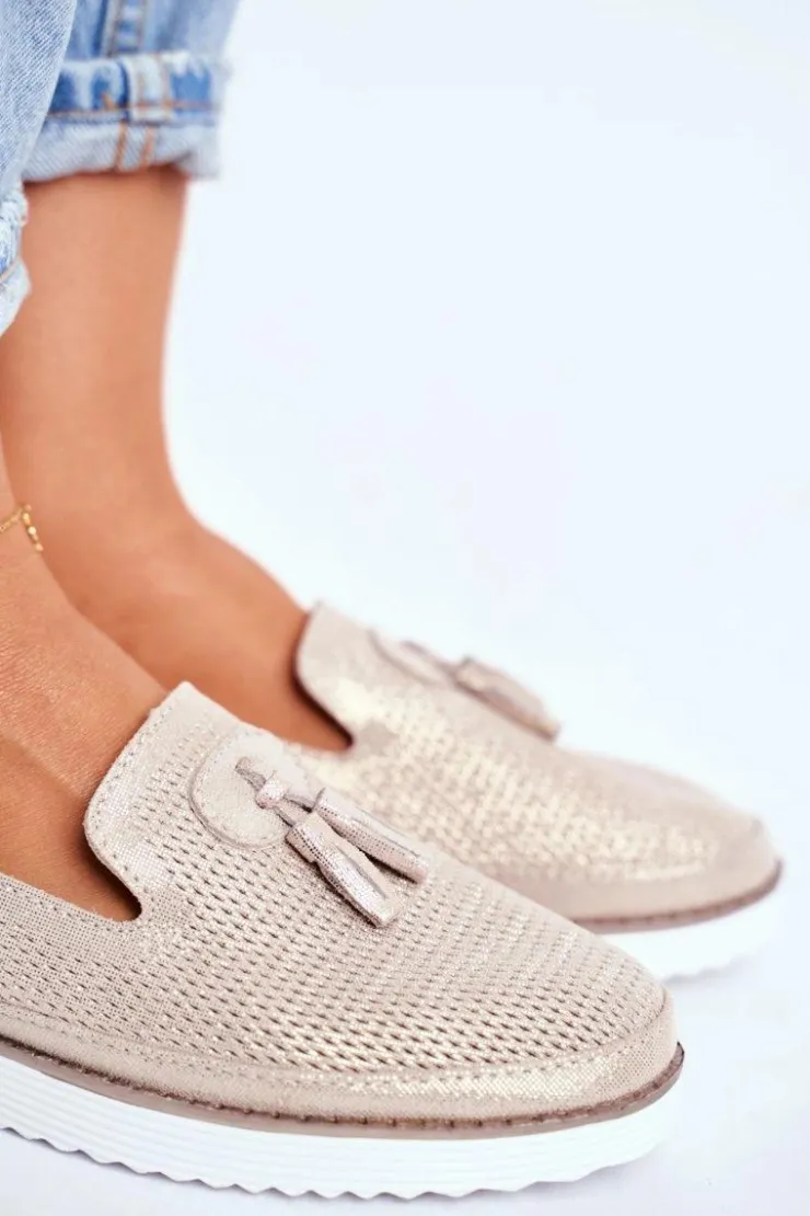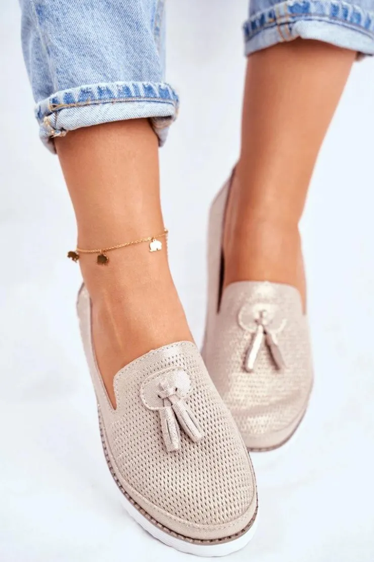 Sale Evento Mokasyny Damskie Skórzane Złote Amore Mio