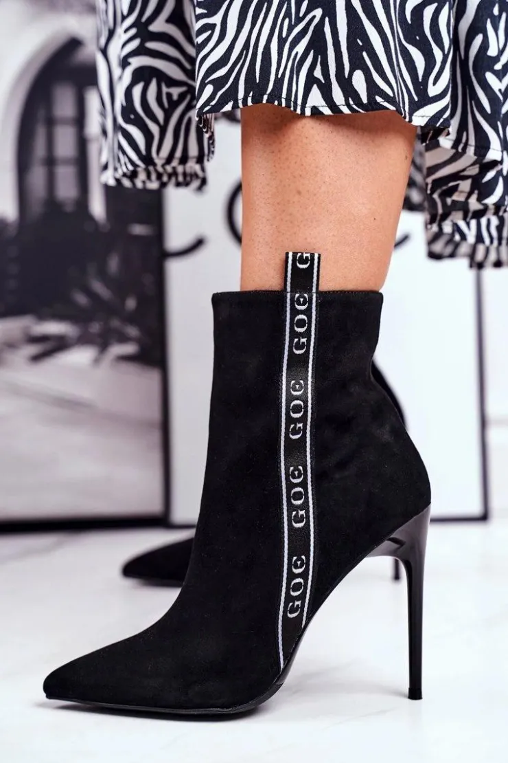 Sale GOE Botki Damskie Na Szpilce Zamszowe Czarne GG2N3005