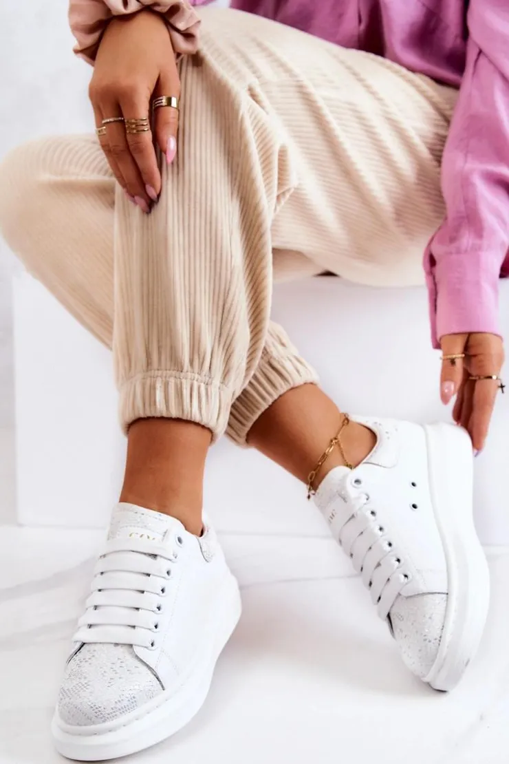 Świetne sneakersy wykonane z wysokiej jakości eko skóry. Ten modny fason idealnie będzie komponował się z codziennymi stylizacjami. Klasycznie wiązany model. Miękka, eko skórzana wkładka sprawi, że będziesz czuć się w nich komfortowo przez cały dzień. Delikatna platforma uniesie Twoją sylwetkę. Przy wyborze rozmiaru prosimy sugerować się tabelą rozmiarów.