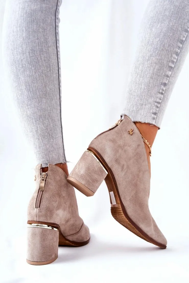 Eleganckie botki dodadzą Twoim stylizacjom klasy i szyku. Wycięta cholewka pięknie wyeksponuje nogi. Stabilny obcas posiada ozdobny element. Nosek w szpic. Z tyłu na botkach znajduje się suwak. Buty na zewnątrz oraz w środku sa wykonane z naturalnej skóry. Nie przegap okazji! Pora na nowe buty! Przy wyborze rozmiaru prosimy sugerować się tabelą rozmiarów.