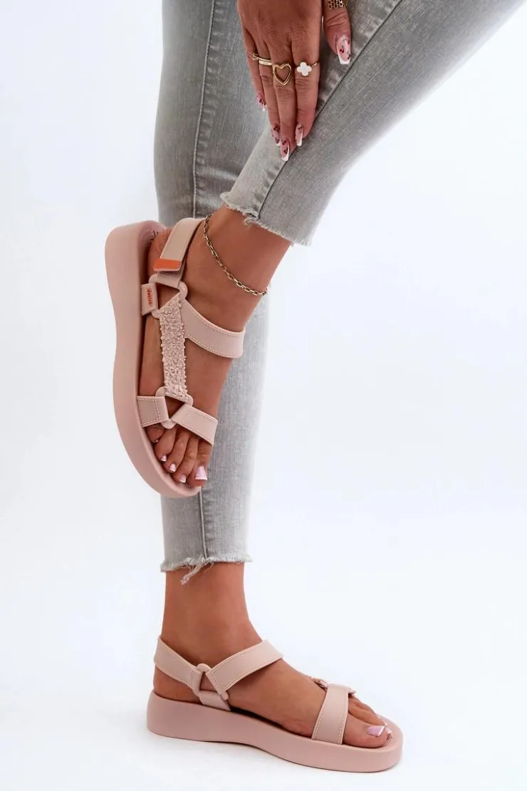 Elastyczne sandały damskie marki ZAXY to idealne obuwie na letnie dni. Zapinane na rzep, co zapewni idealne dopasowanie do stopy. Wykonane z wysokogatunkowego tworzywa. Z boku ozdobny pasek z małymi kwiatuszkami. Zaxy to pachnące gumą balonową buty, które na pewno przypadną Ci do gustu! Przy wyborze rozmiaru prosimy kierować się tabelą rozmiarów.