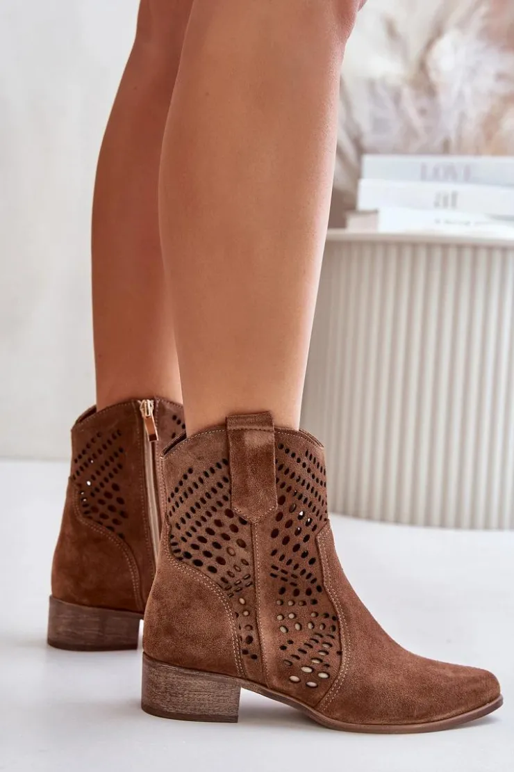 Botki damskie to idealny wybór na jesienne dni. Wykonane z wysokiej jakości naturalnego zamszu, są eleganckie i stylowe. Osadzone na niskim obcasie, zapewniają wygodę i stabilność. Ażurowy wzorek na cholewce dodaje subtelnego uroku, a zamek ułatwia szybkie zakładanie. Szpiczaste noski optycznie wysmuklą nogi. Ten niezwykle modny fason powinnaś mieć w swojej szafie! Przy wyborze rozmiaru prosimy sugerować się tabelą rozmiarów.
