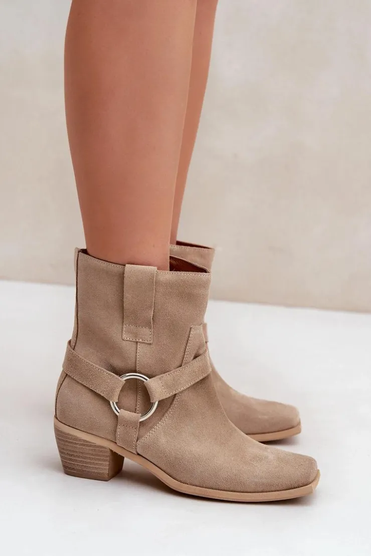 Zazoo Botki Na Słupku|Brązowe I Beżowe Botki*Botki Z Naturalnego Zamszu Na Obcasie 3444/2 Jasnobeżowe Beżowy
