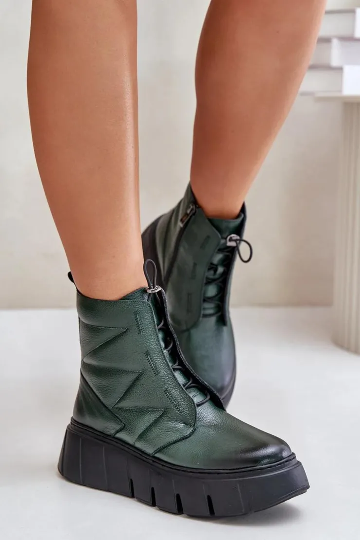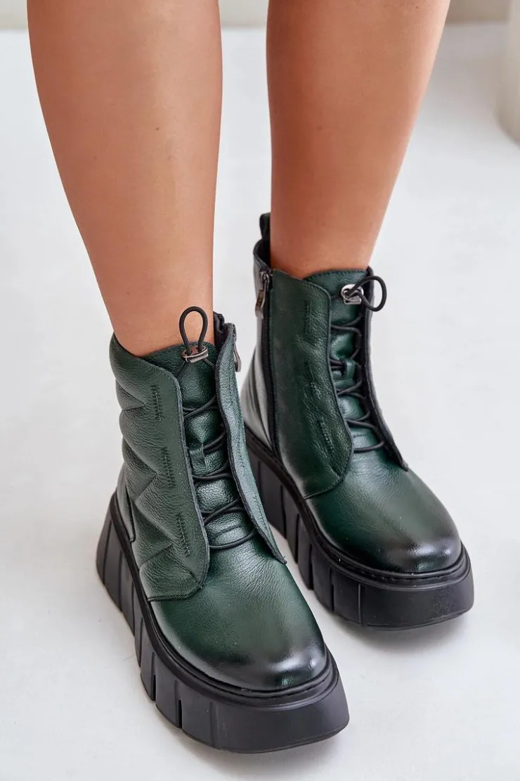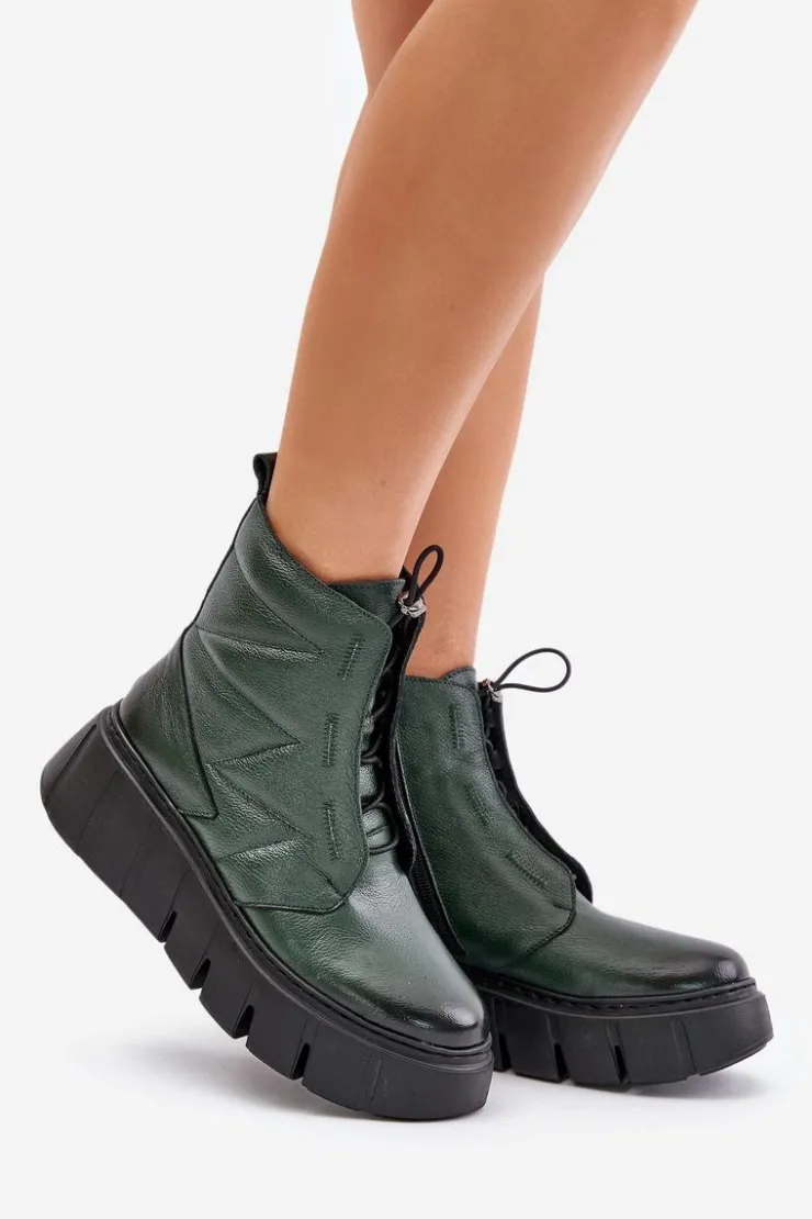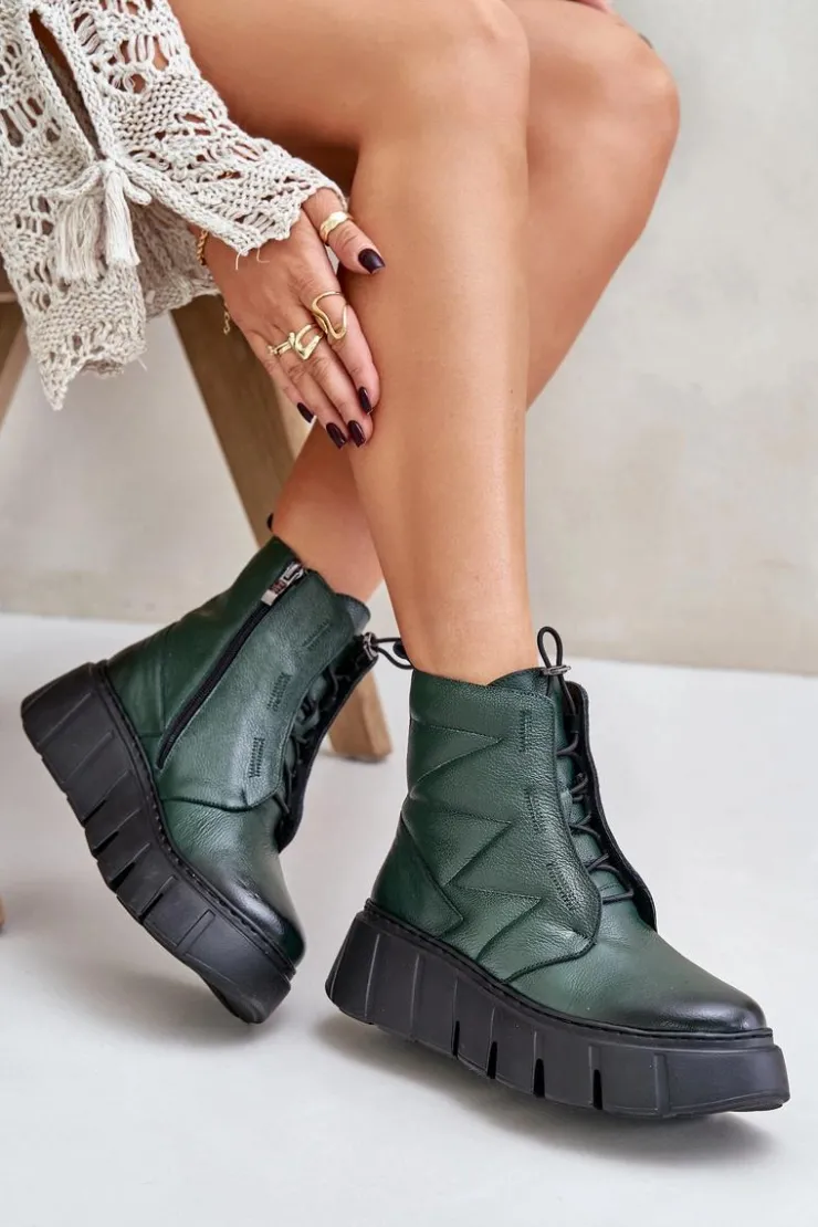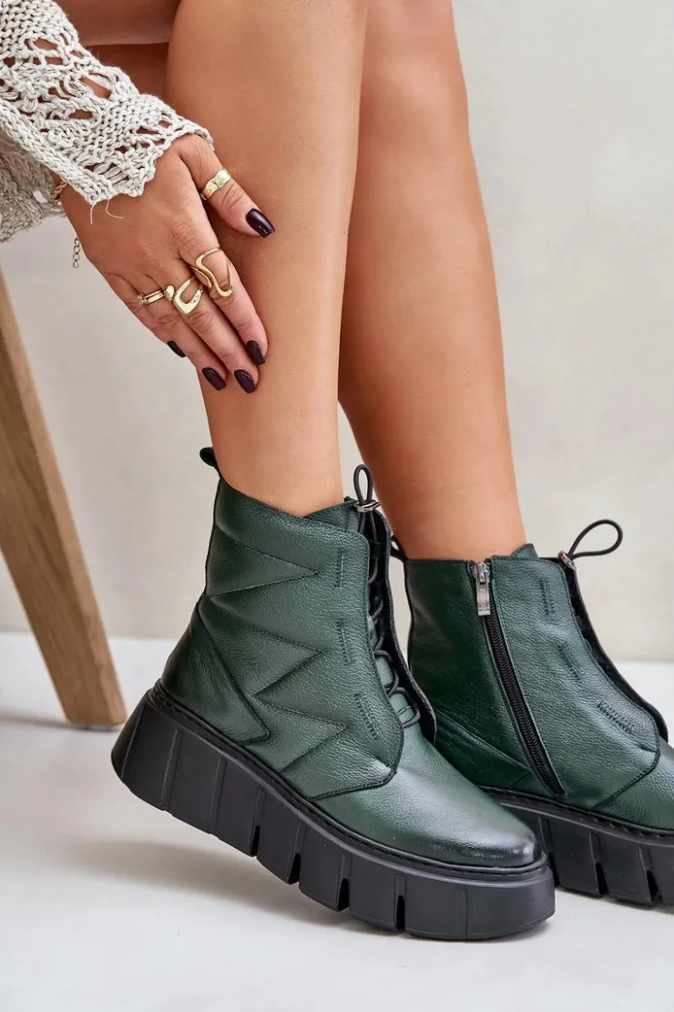 Damskie botki wykonane z naturalnej skóry, osadzone na platformie i koturnie, to idealny wybór na chłodniejsze dni. Ocieplane filcem, zapewniają ciepło i komfort noszenia. Model zapinany na zamek ułatwia zakładanie, a elegancki design sprawia, że botki doskonale pasują zarówno do codziennych, jak i bardziej stylowych stylizacji. Przy wyborze rozmiaru prosimy kierować się tabelą rozmiarów