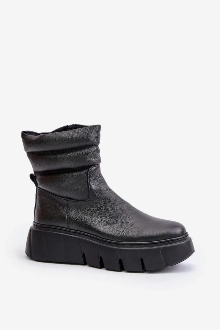 Damskie botki z wysokogatunkowej skóry naturalnej to doskonały wybór na jesień i zimę. Z boku cholewki posiadają praktyczny suwak, który ułatwia ich zakładanie. Osadzone na platformie z delikatnym koturnem, łączą w sobie nowoczesny styl i wygodę. Wnętrze ocieplone filcem zapewnia ciepło, a zaokrąglone noski dodają klasycznego uroku. Ten model z pewnością będzie świetnym dodatkiem do wielu jesienno-zimowych stylizacji. Przy wyborze rozmiaru prosimy kierować się tabelą rozmiarów