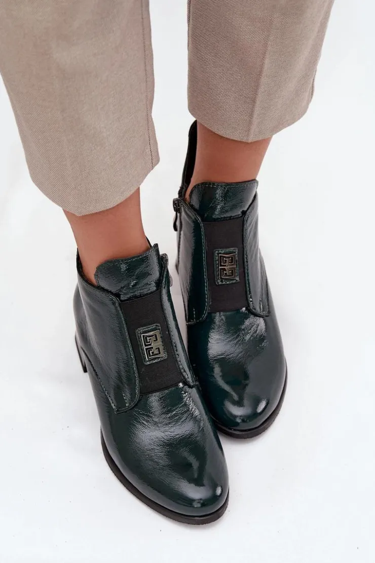 Botki ze skóry naturalnej to połączenie elegancji i wygody. Osadzone na stabilnym obcasie typu klocek, zapewniają komfort przez cały dzień. Wnętrze jest ocieplane, co gwarantuje ciepło w chłodniejsze dni. Z przodu buta znajduje się elastyczna wstawka, która nie tylko ułatwia zakładanie, ale również dodaje subtelnego, modnego akcentu. Zapinane na zamek. Dodatkowo mały ozdobny detal sprawia, że te botki wyróżniają się oryginalnym stylem. Koniecznie powinnaś je mieć! Przy wyborze rozmiaru prosimy kierować się tabelą rozmiarów.