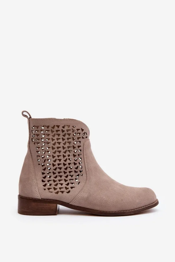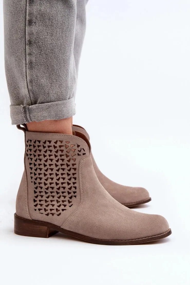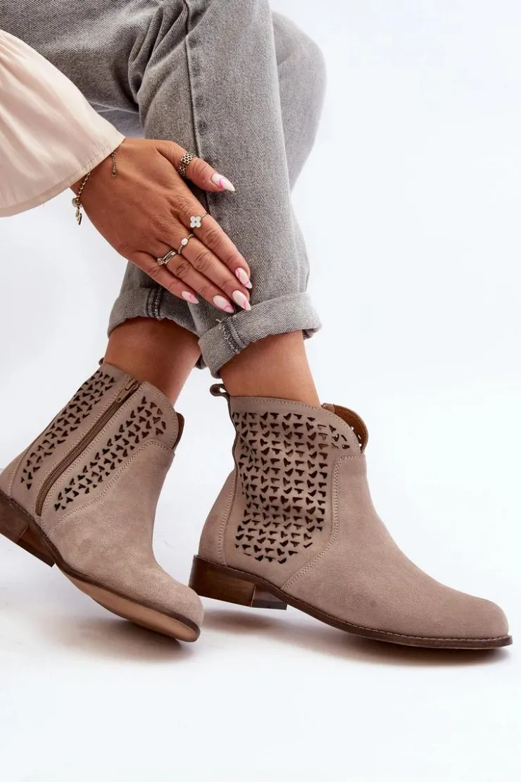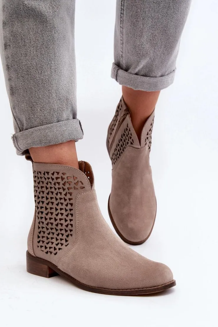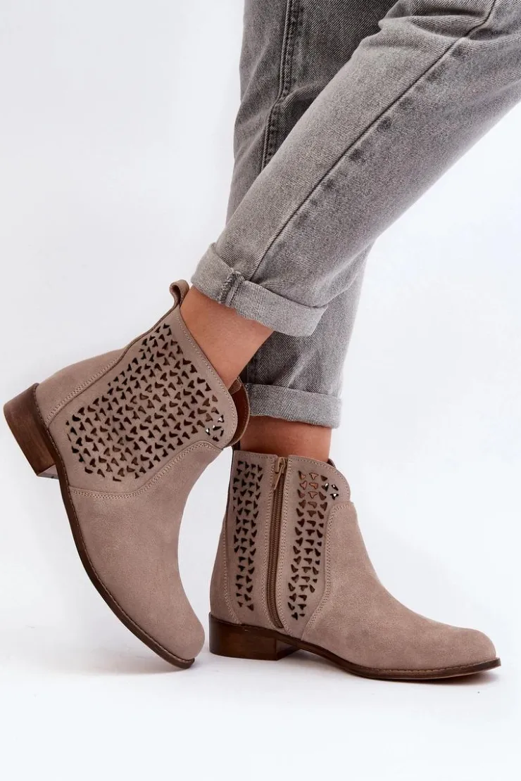 Zazoo Botki Wiosenne|Botki Skórzane*2791 Zamszowe Ażurowe Botki Beżowe