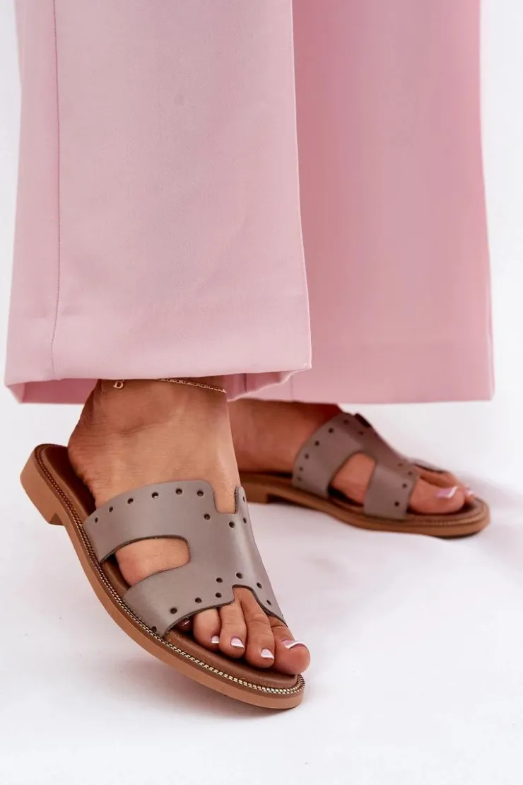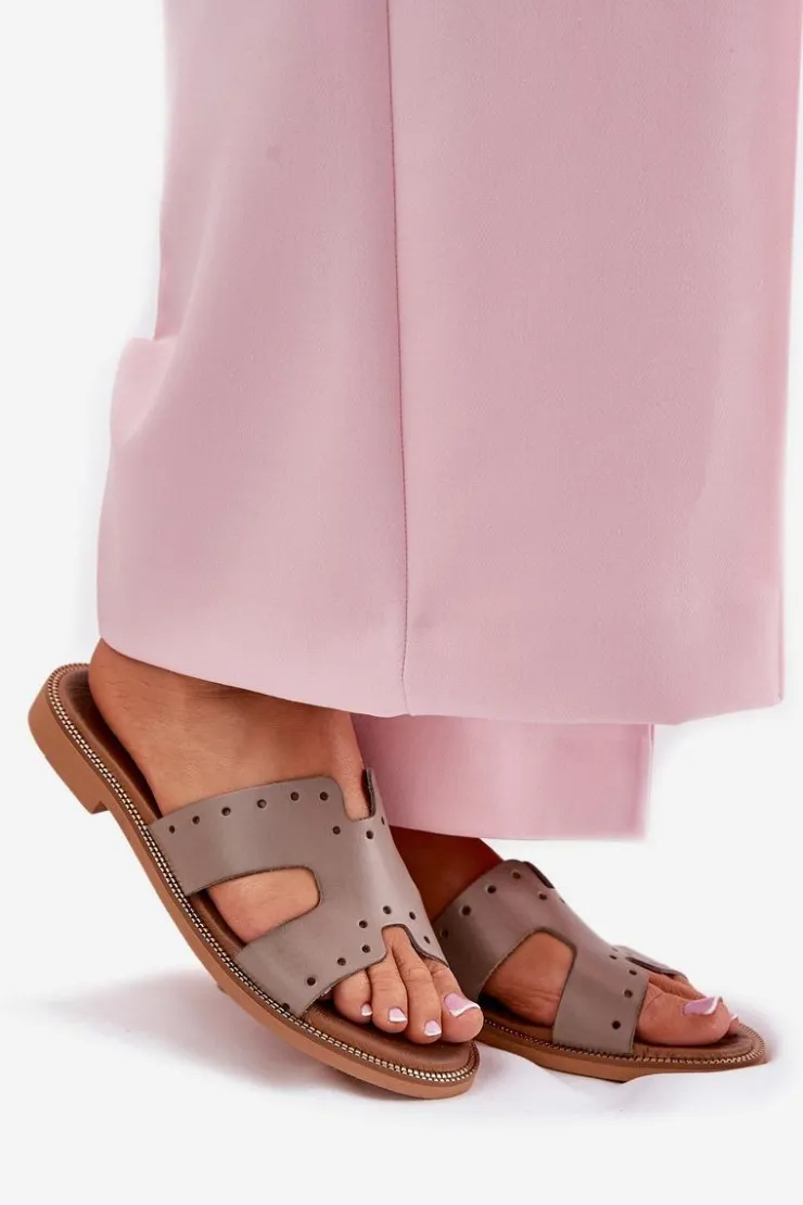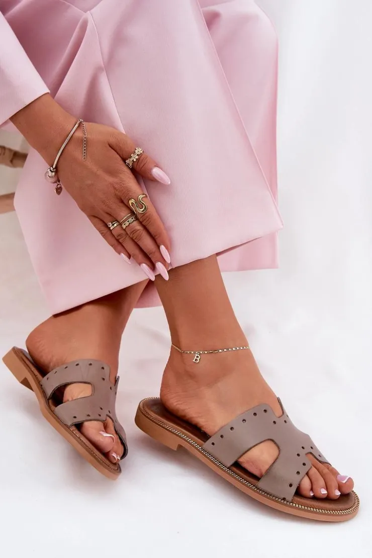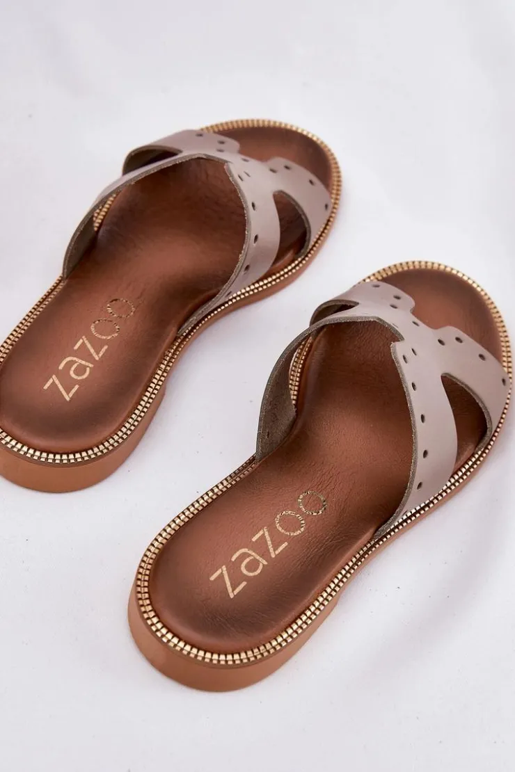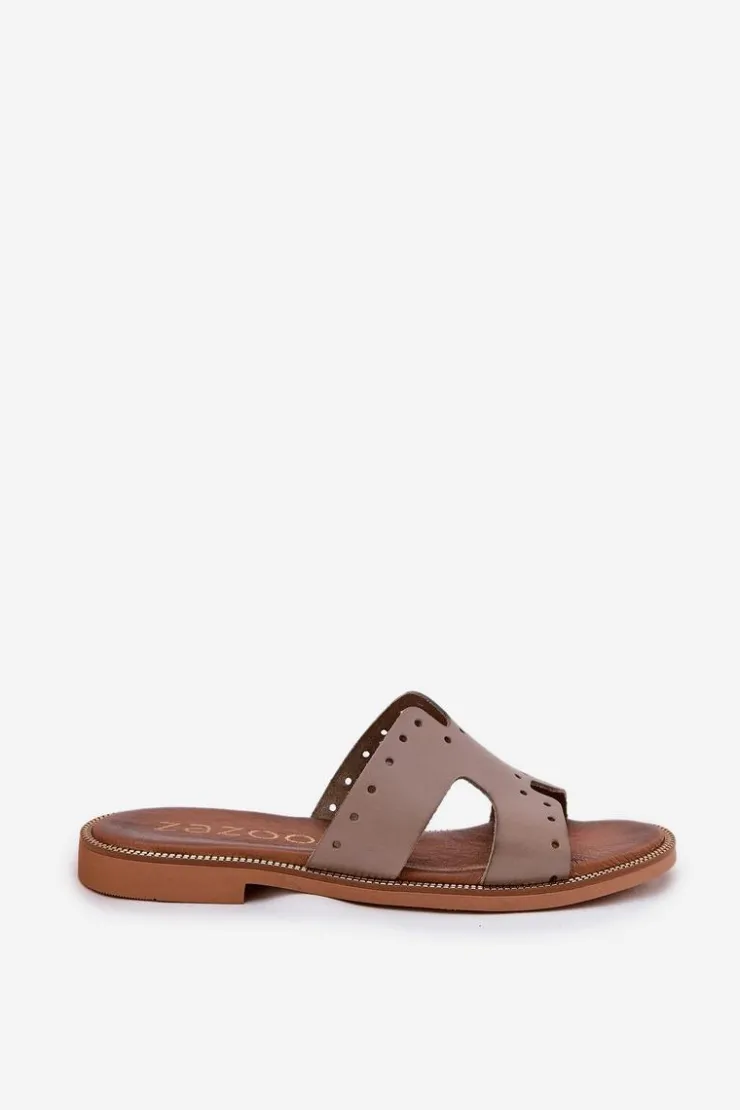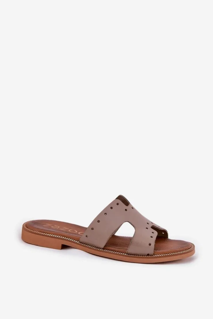 Zazoo Klapki Damskie Klasyczne*40326 Damskie Klapki Z Ozdobnymi Wycięciami Ciemnobeżowe Beżowy