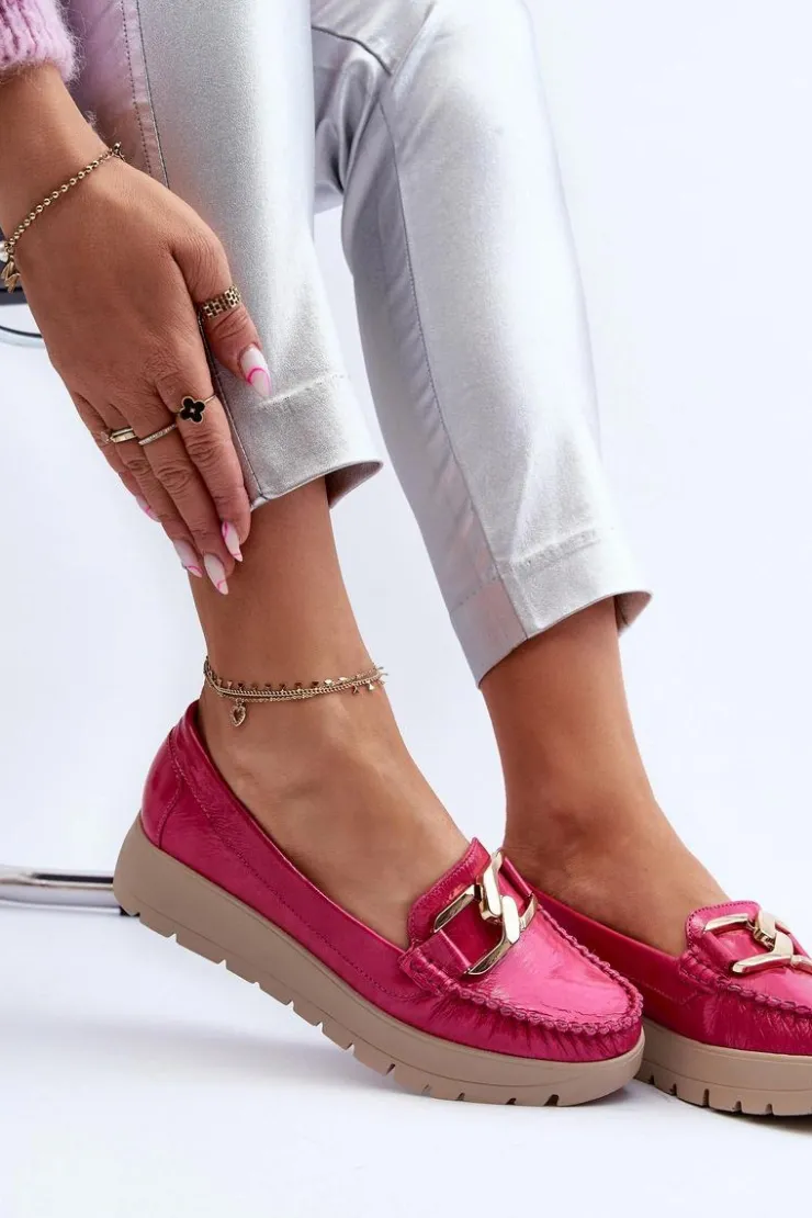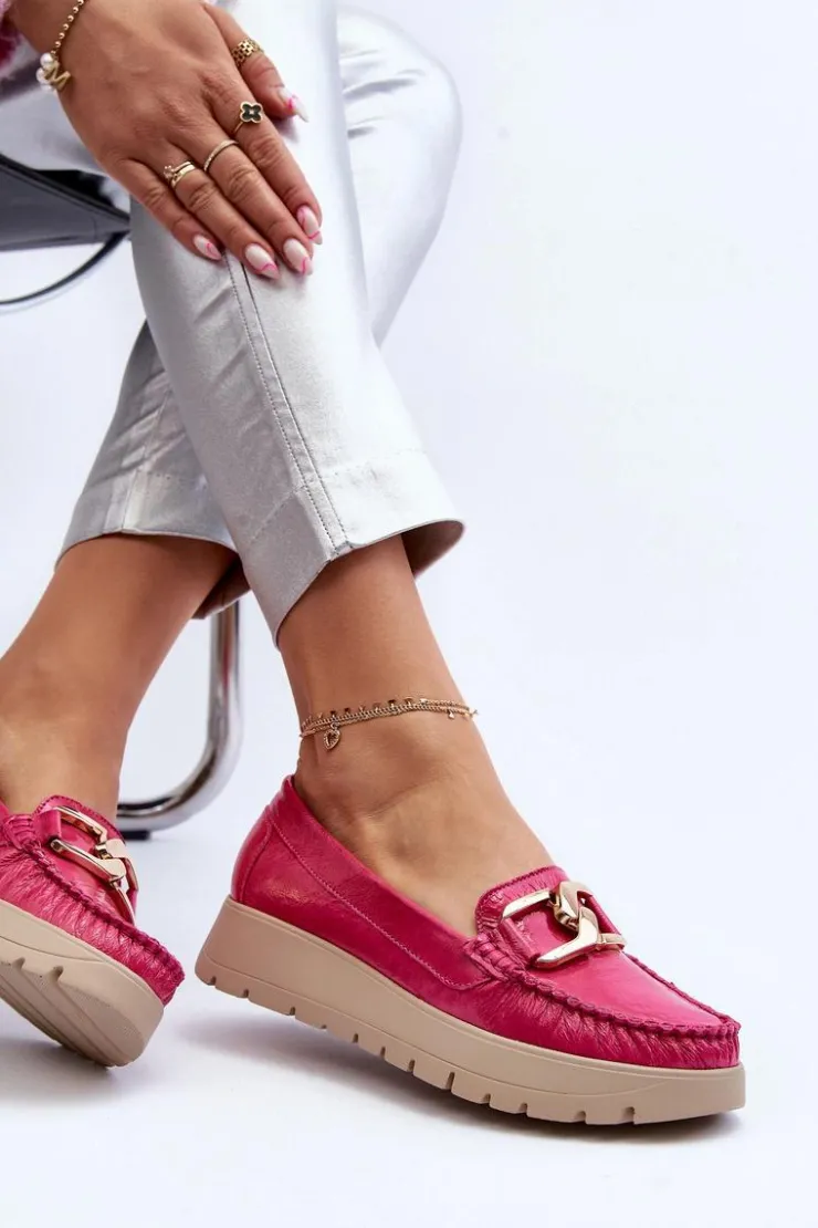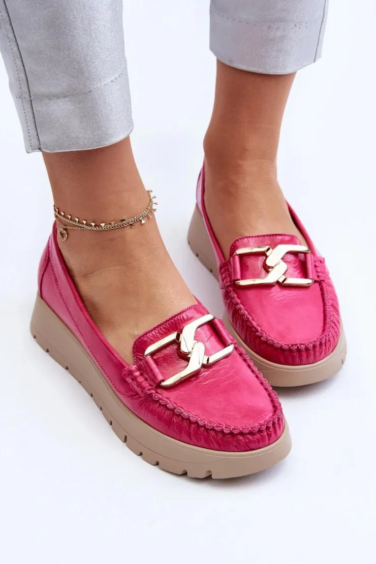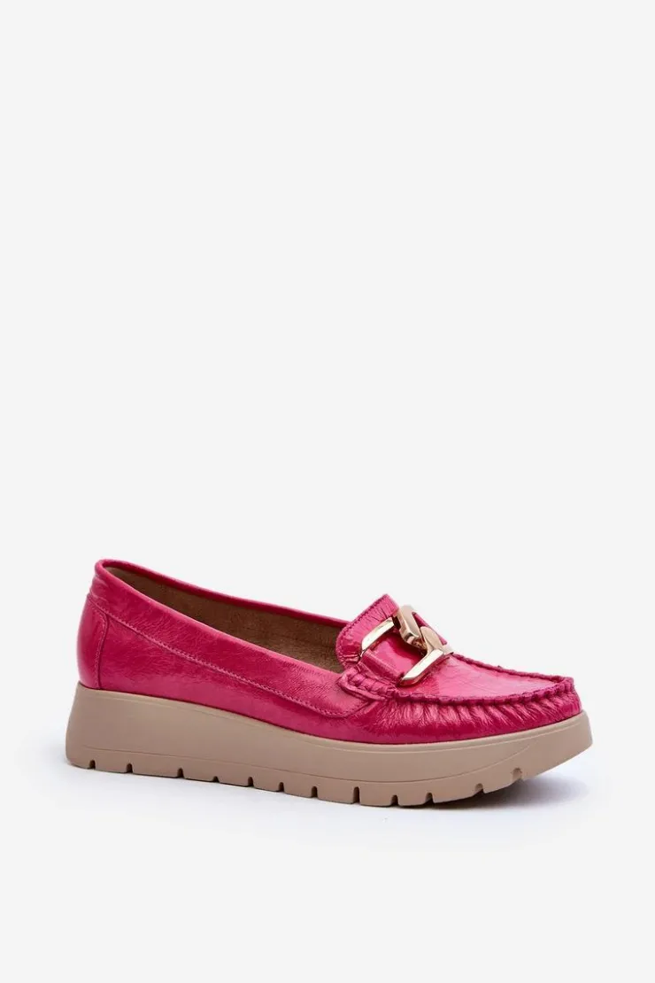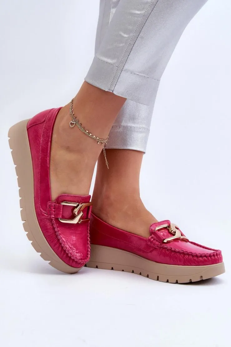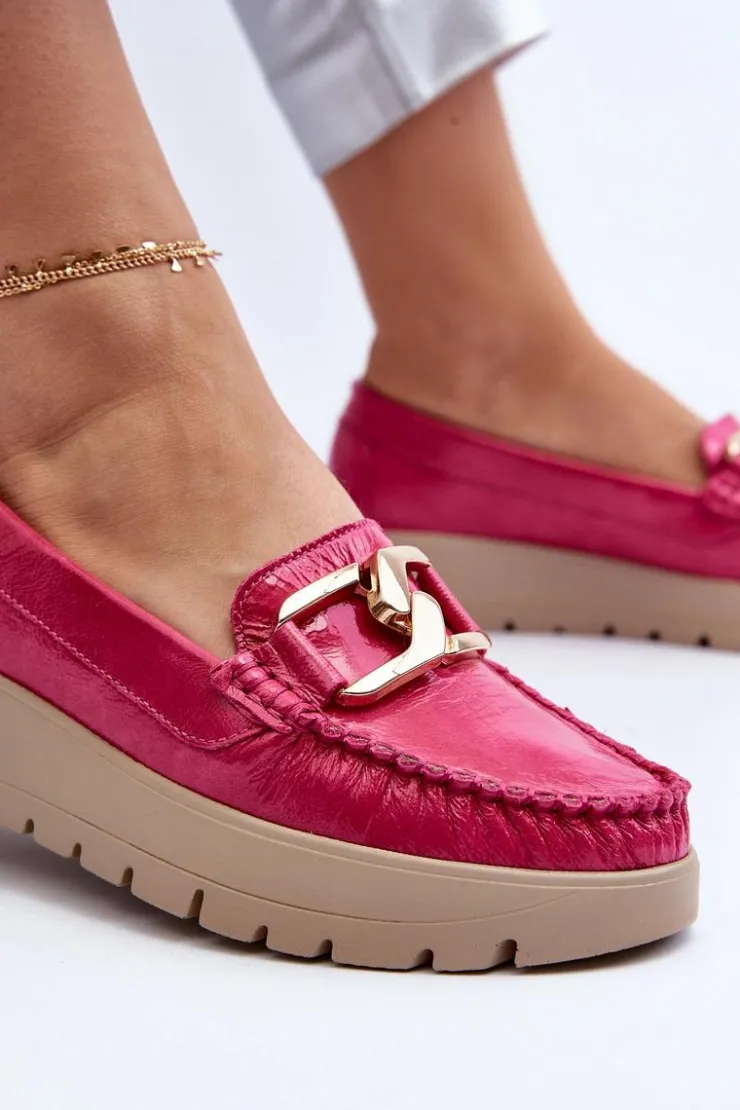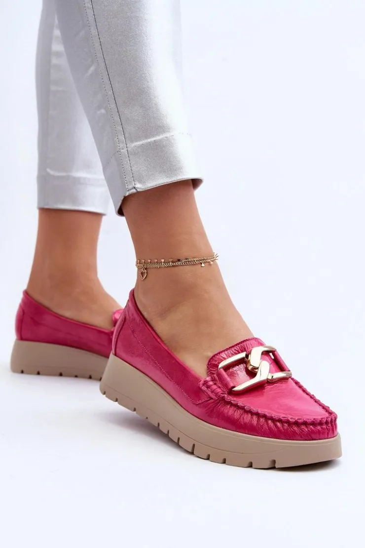 Zazoo Mokasyny Damskie Skórzane|Mokasyny Na Platformie*10141 Skórzane Mokasyny Na Platformie Z Ozdobą Fuksja