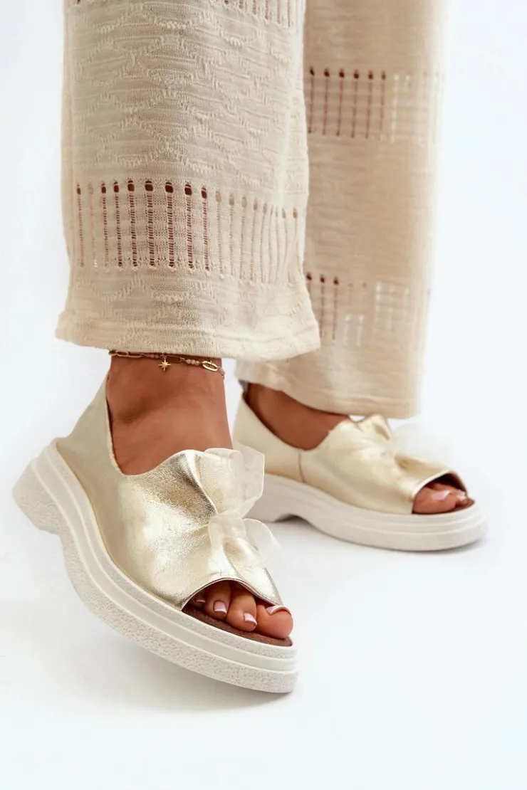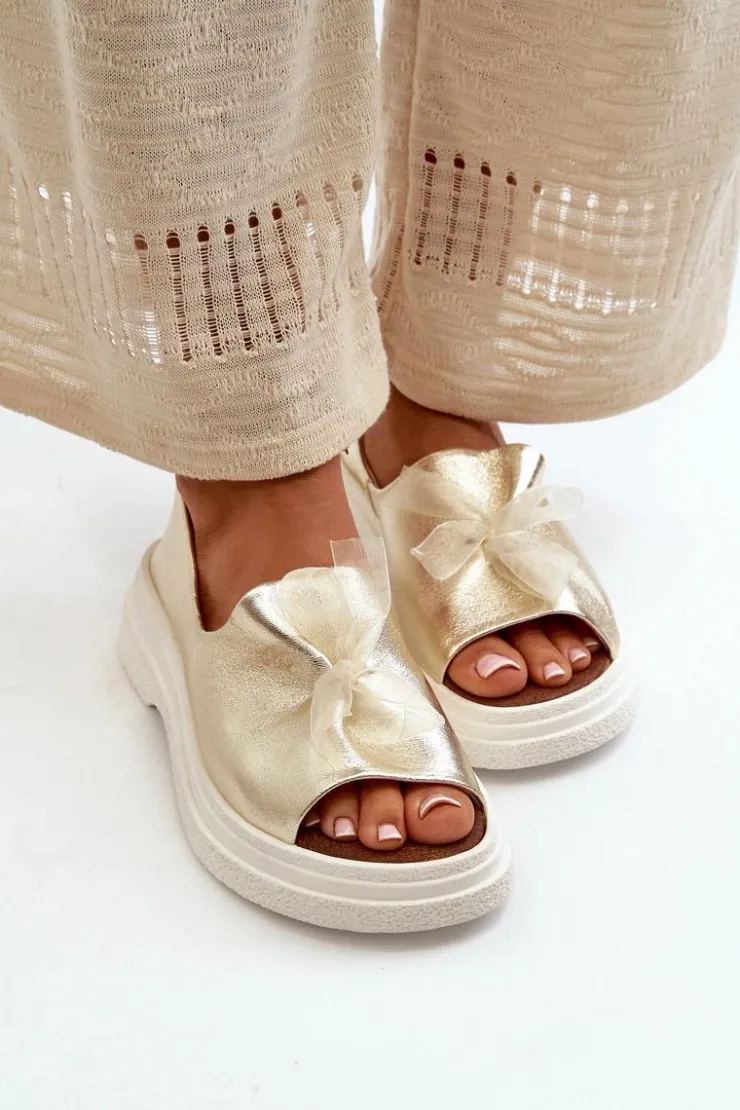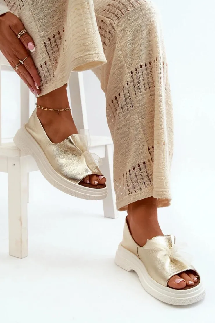 Damskie sandały wykonane ze skóry naturalnej to elegancki i komfortowy wybór na ciepłe dni. Osadzone na grubej, solidnej podeszwie, zapewniają stabilność i wygodę noszenia przez cały dzień. Miękka, skórzana wkładka dodatkowo zwiększa komfort użytkowania. Przód sandałów ozdobiony uroczą kokardką dodaje im subtelnego uroku i sprawia, że stanowią stylowy element każdej letniej stylizacji. Przy wyborze rozmiaru prosimy kierować się tabelą rozmiarów.