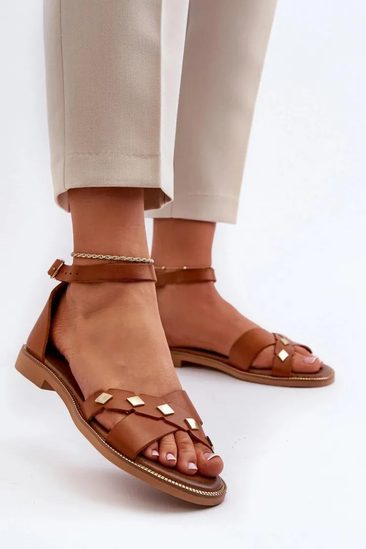 Sandały damskie z płaską podeszwą, wykonane z naturalnej skóry, to wyjątkowo komfortowe i stylowe obuwie na letnie dni. Z przodu posiadają dwa przeplatające się paski. Zapinane na regulowany pasek ze sprzączką, zapewniają idealne dopasowanie do stopy. Te sandały są nie tylko praktyczne, ale także nadają elegancji każdej letniej stylizacji. Przy wyborze rozmiaru prosimy kierować się tabelą rozmiarów.
