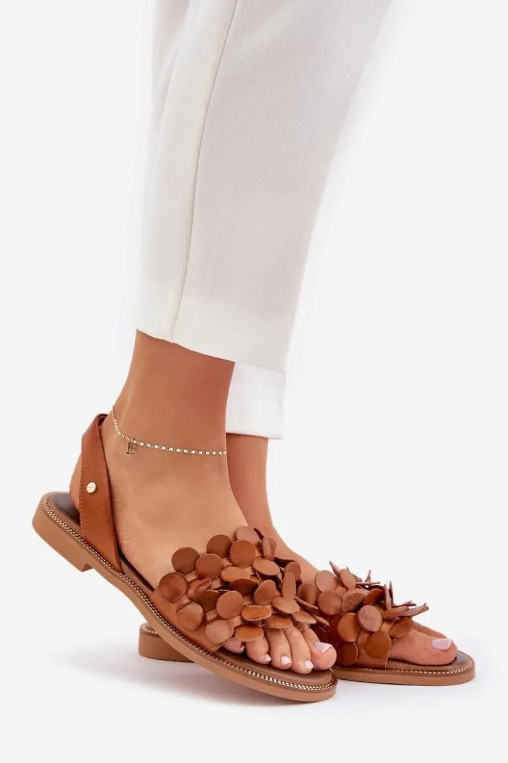 Sandały wykonane z naturalnej skóry to elegancka i wygodna propozycja na ciepłe dni. Osadzone na płaskim obcasie, zapewniają komfort i stabilność przez cały dzień. Z tyłu paseczek na piętę z gumką w środku gwarantuje idealne dopasowanie i wygodę noszenia, umożliwiając swobodny ruch. Te sandały to doskonały wybór na upale dni! Przy wyborze rozmiaru prosimy kierować się tabelą rozmiarów.