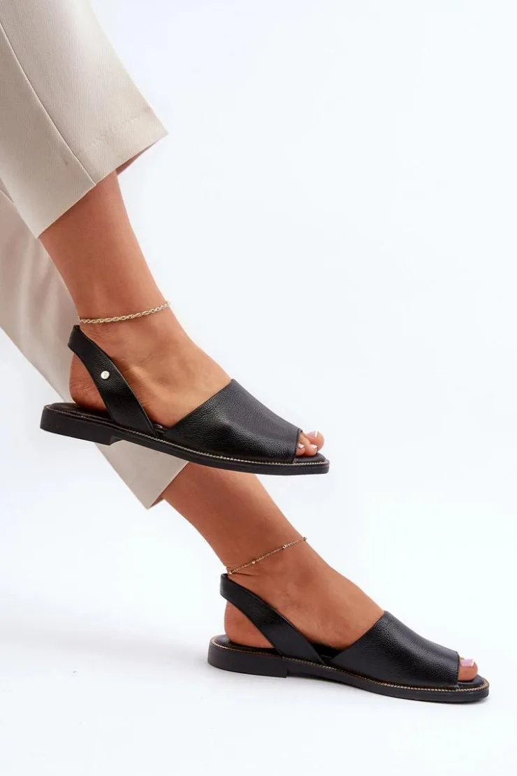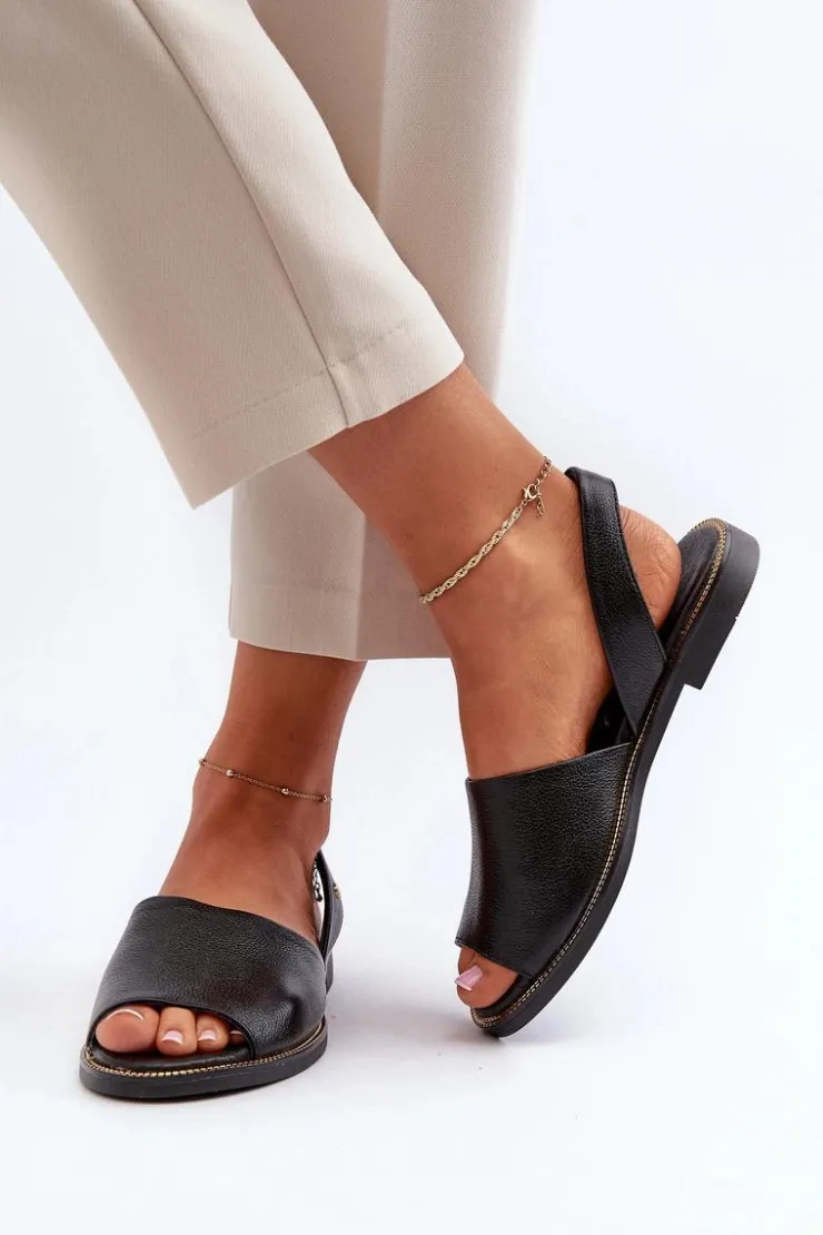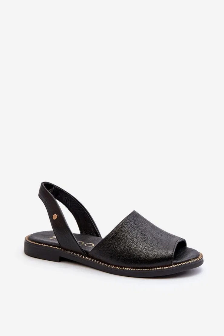 Wsuwane sandałki damskie zostały wykonane z wysokiej jakości naturalnej skóry. Osadzone na płaskim obcasie ze zdobieniami przy podeszwie. Sandałki posiadają odkrytą piętę i palce. Miękka, skórzana wkładka zapewni wygodne użytkowanie. Sandałki są wsuwane, a ich tylna część cholewki jest delikatnie usztywniona. Przy wyborze rozmiaru prosimy kierować się tabelą rozmiarów.